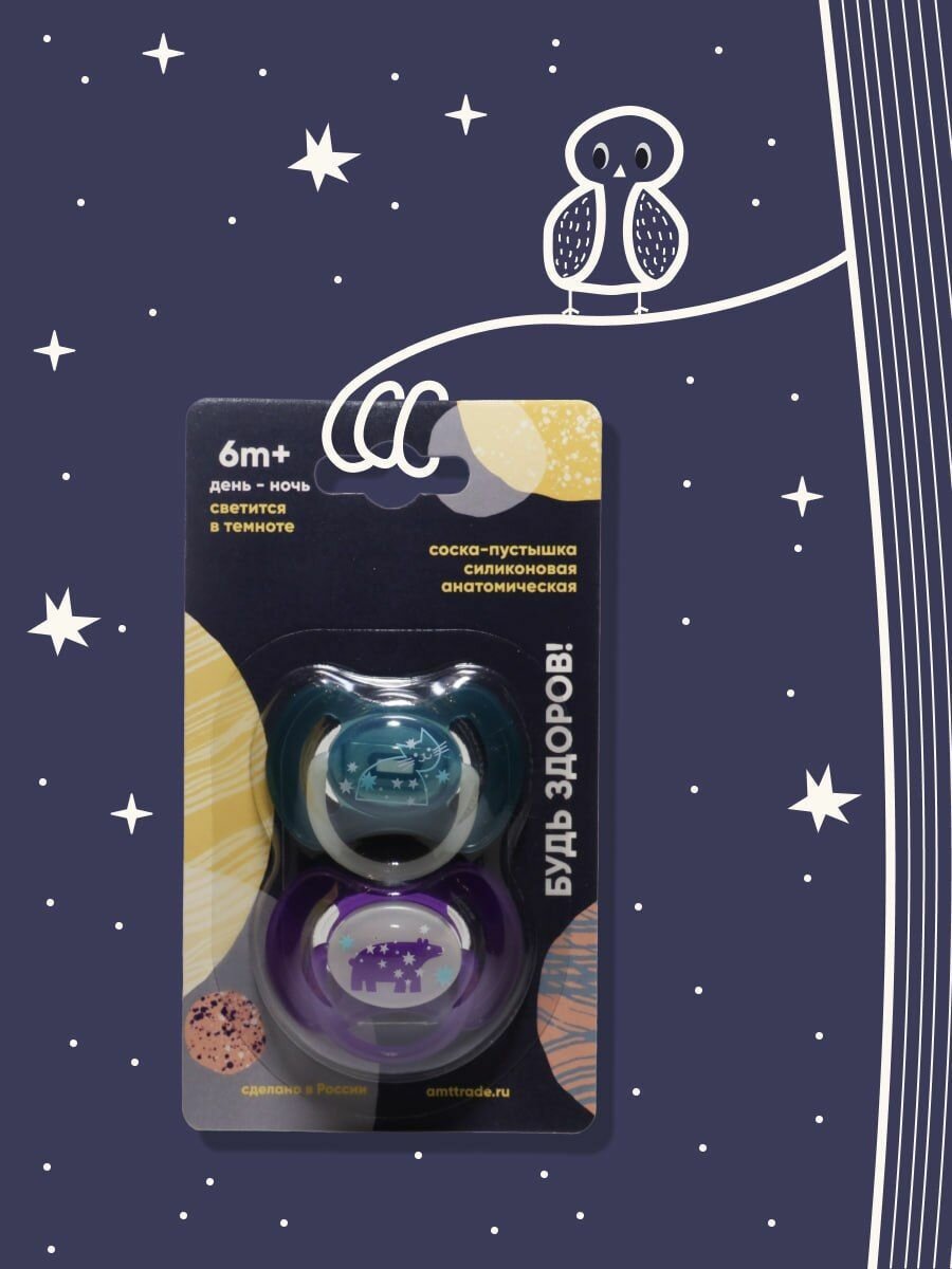 Соска-пустышка силиконовая анатомическая "день-ночь" 6+ 2 шт интересное: