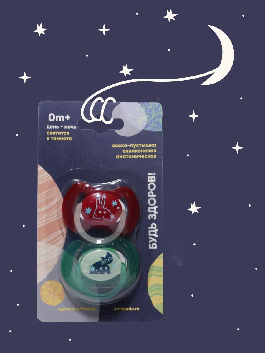 Соска-пустышка силиконовая анатомическая "день-ночь" 0+ 2 шт интересное: