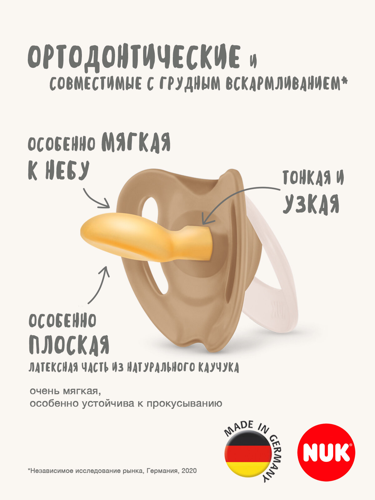 Купить NUK For Nature Соска пустышка из латекса, 0-6 месяцев, 2 шт. в контейнере