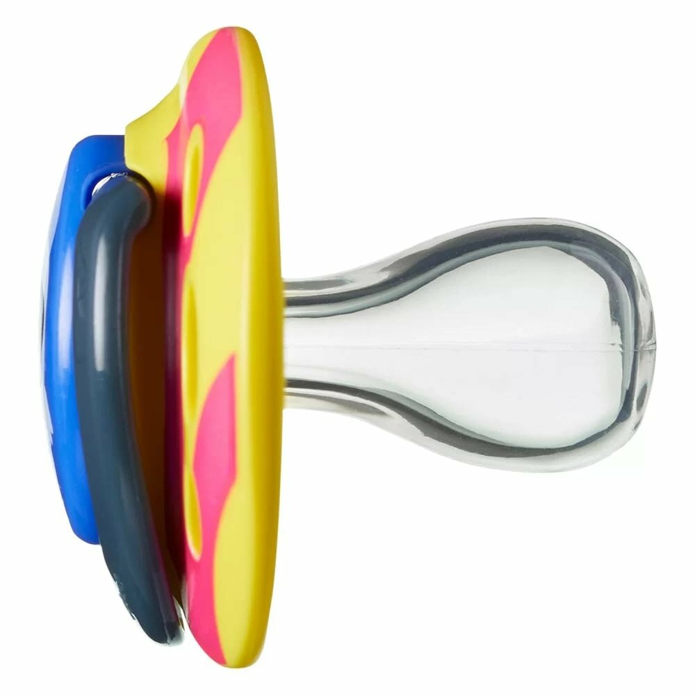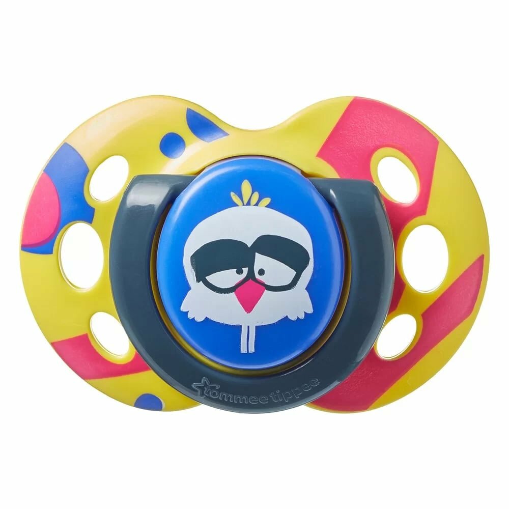 Соска-пустышка Tommee Tippee силиконовая, Fun Style, 6-18 мес, 2 шт. синий/желтый интересное: