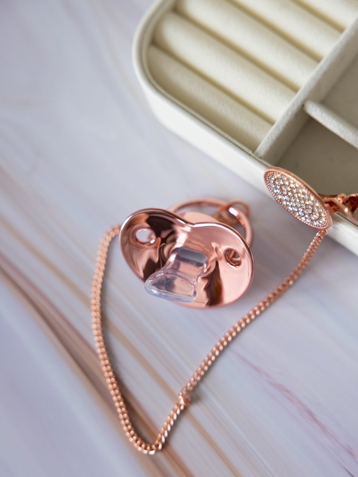 СохранитьПустышка розовая в стразах с держателем интересное: