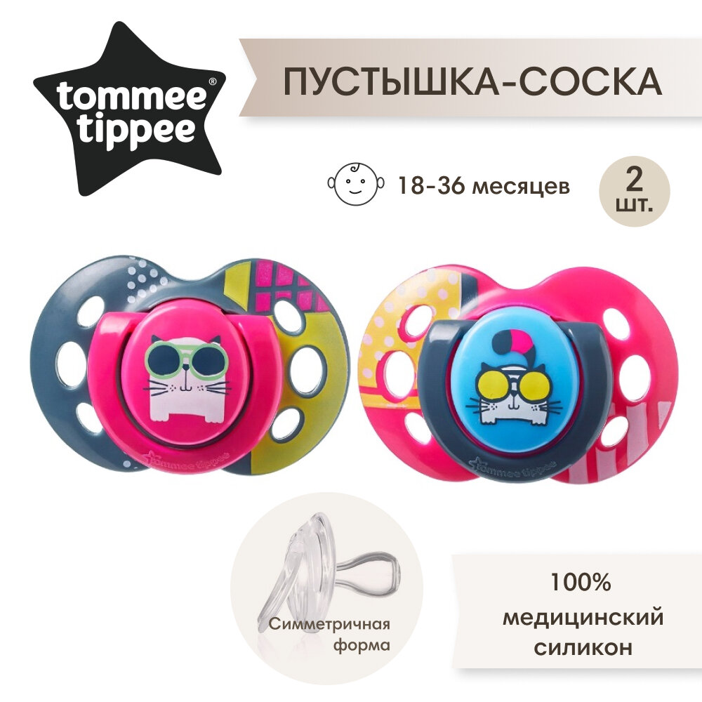 Cоска-пустышка Tommee Tippee силиконовая Fun Style для девочек, 18-36 мес, 2 шт. интересное: