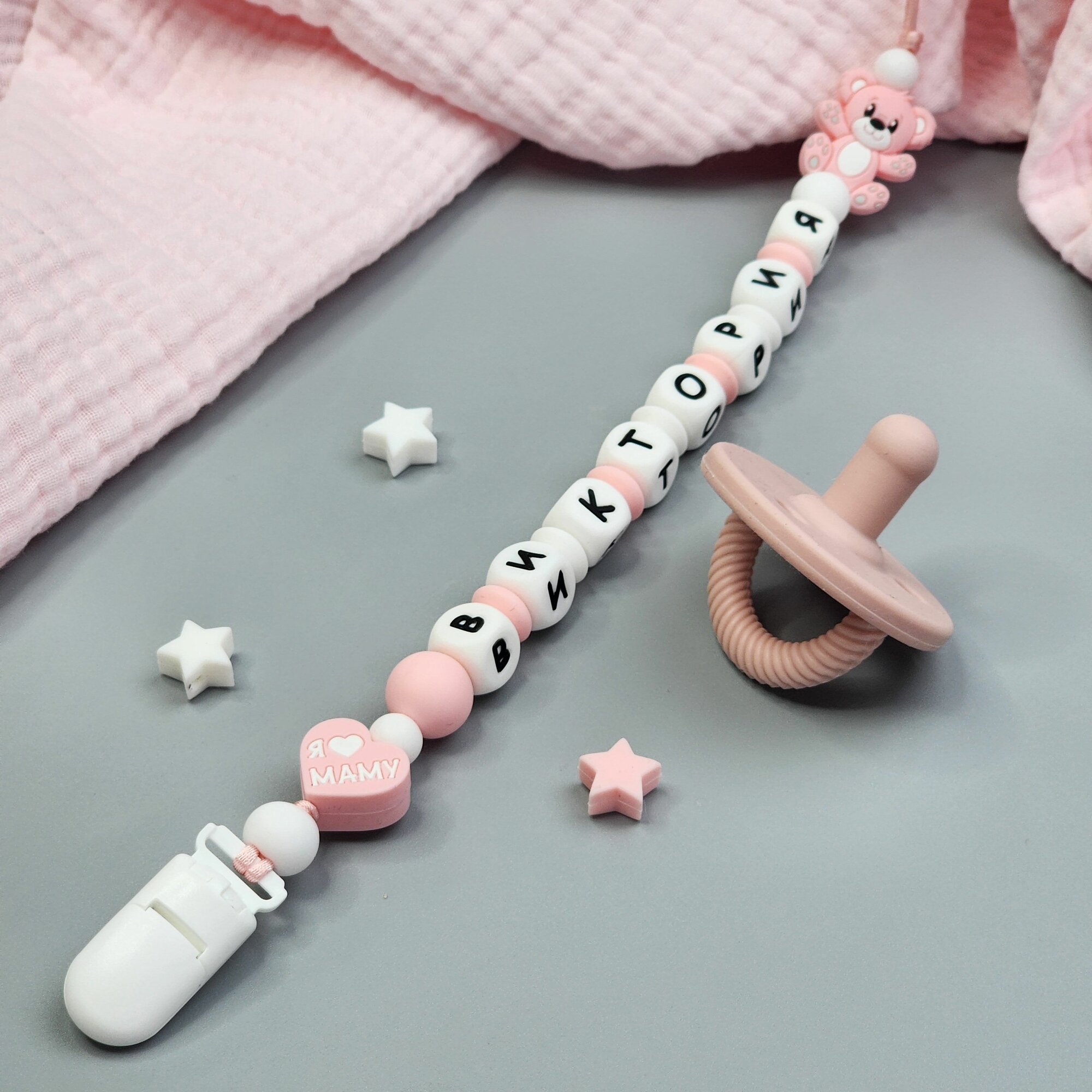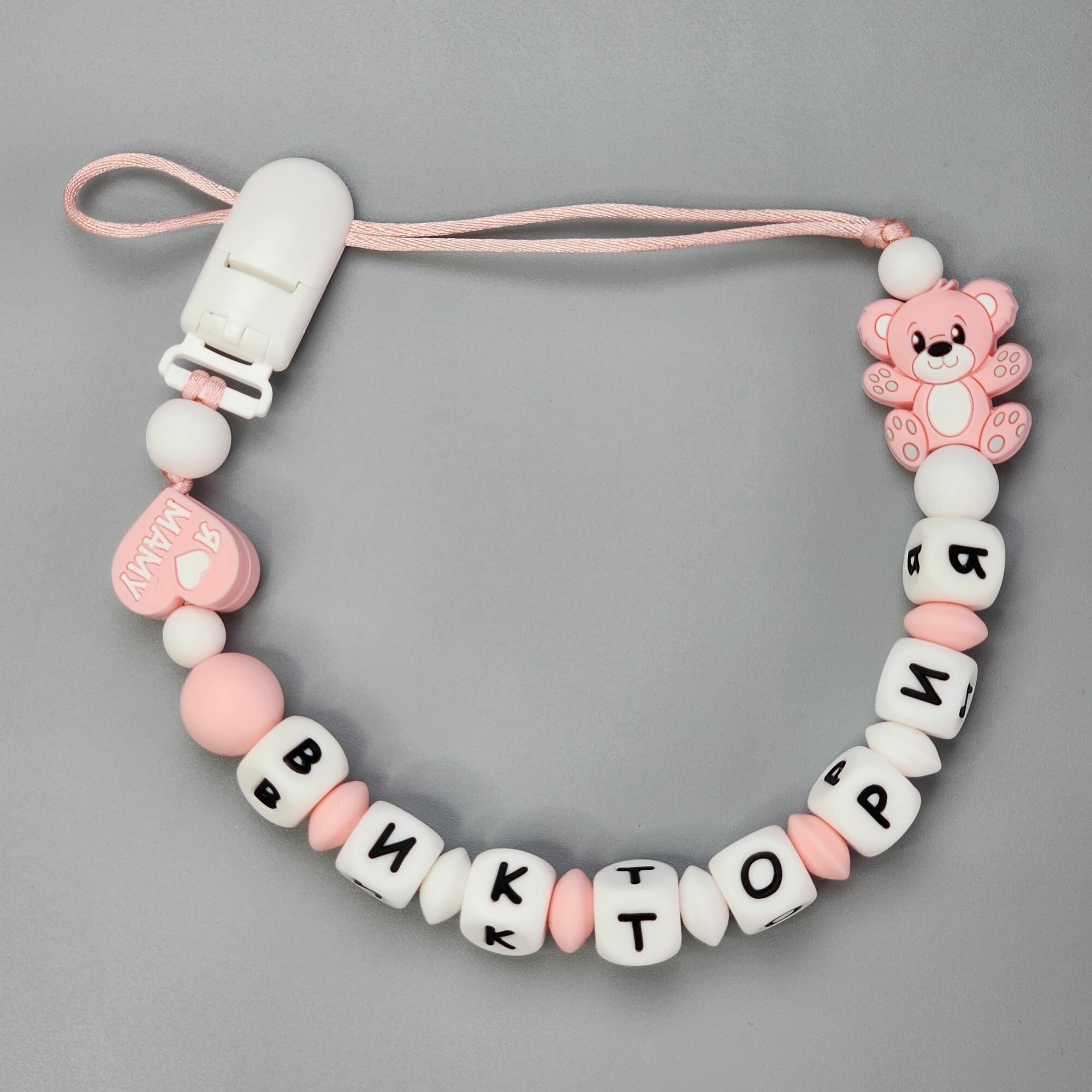 Купить Именной силиконовый держатель для пустышки - Виктория, Вика, для новорожденных
