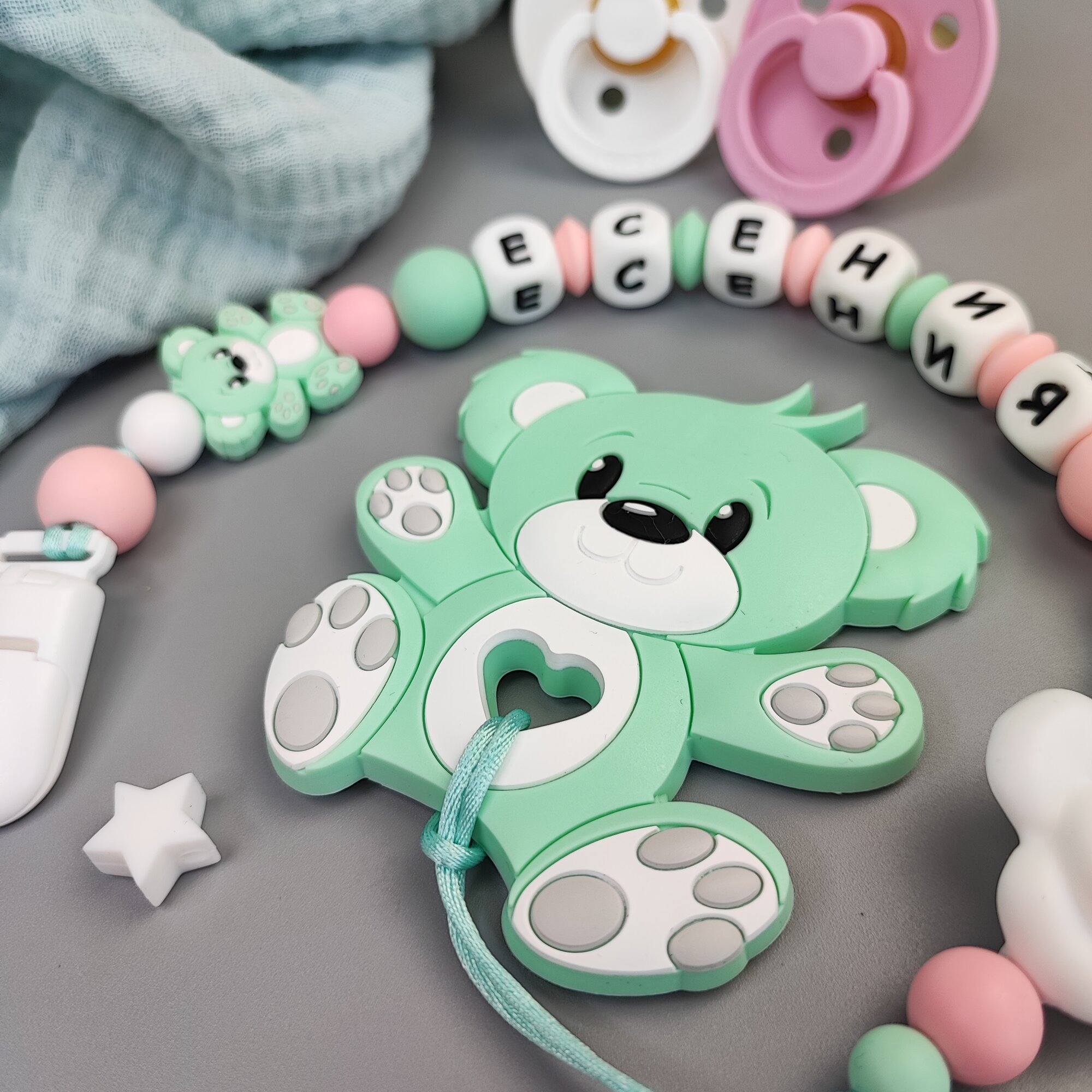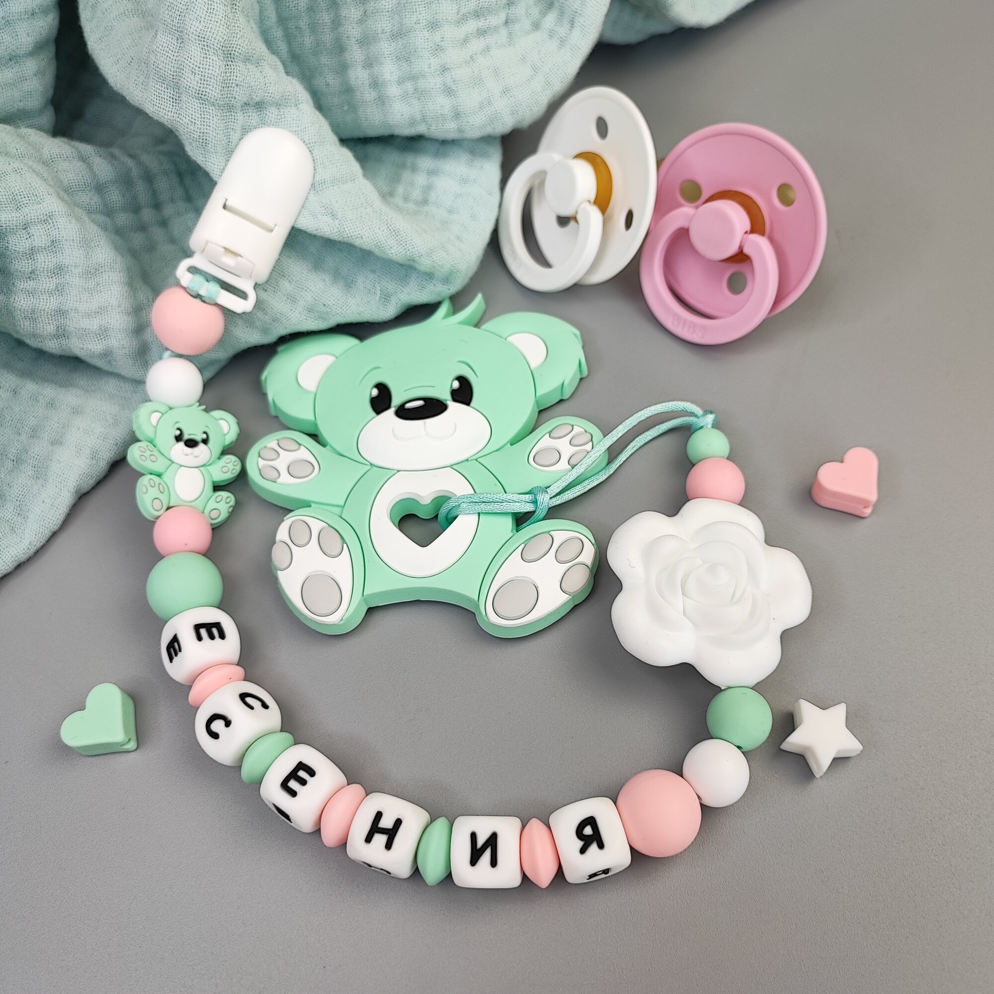 Именной силиконовый держатель для пустышки с грызунком - Есения, для новорожденных, прорезыватель интересное: