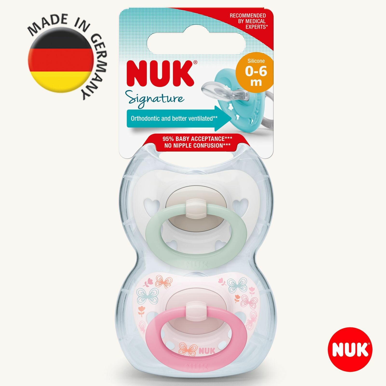 Купить NUK SIGNATURE Соска-Пустышка из силикона, 0-6 месяцев, 2 шт.