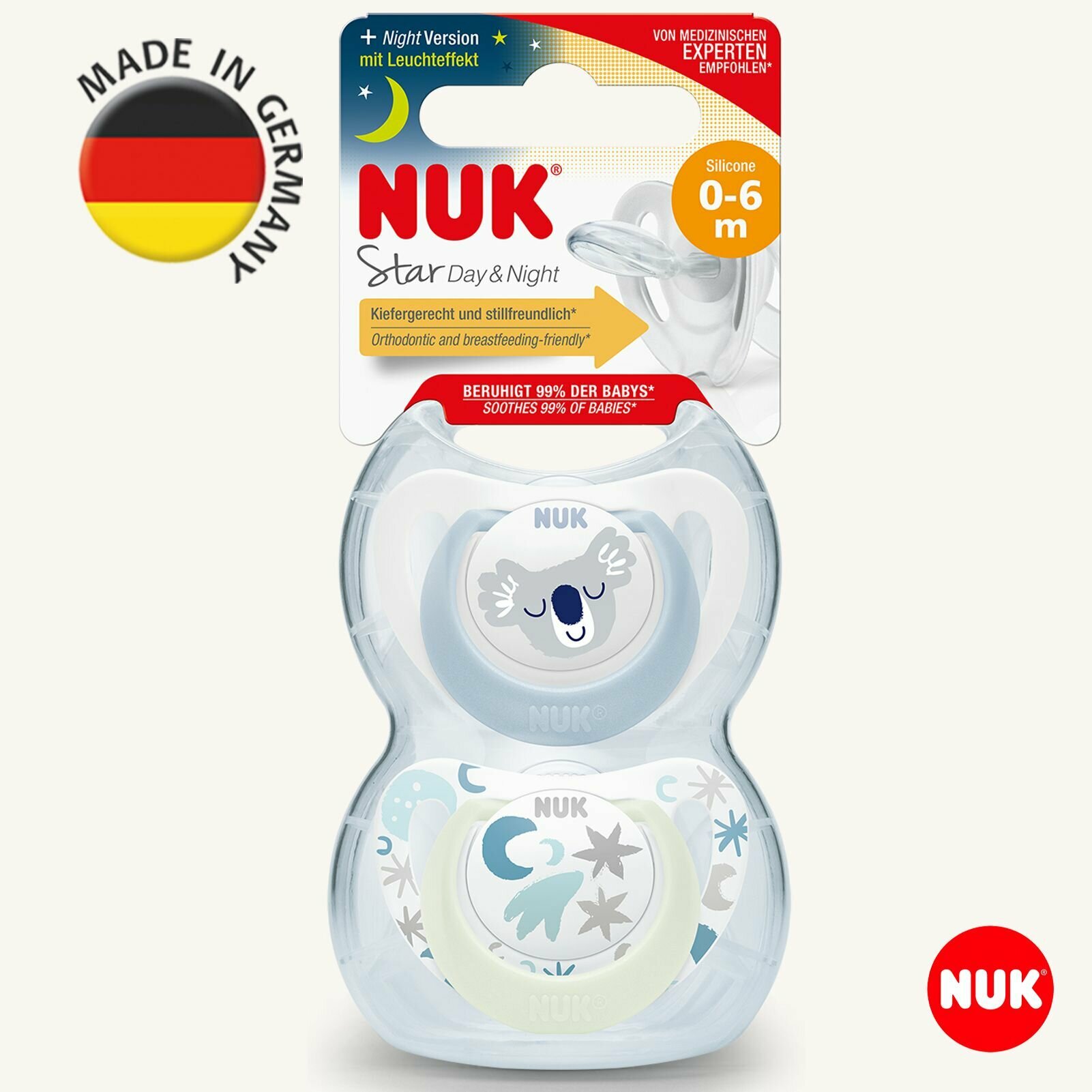 Купить NUK STAR NIGHT Соска пустышка силиконовая для малышей 0-6 месяцев, 2 шт