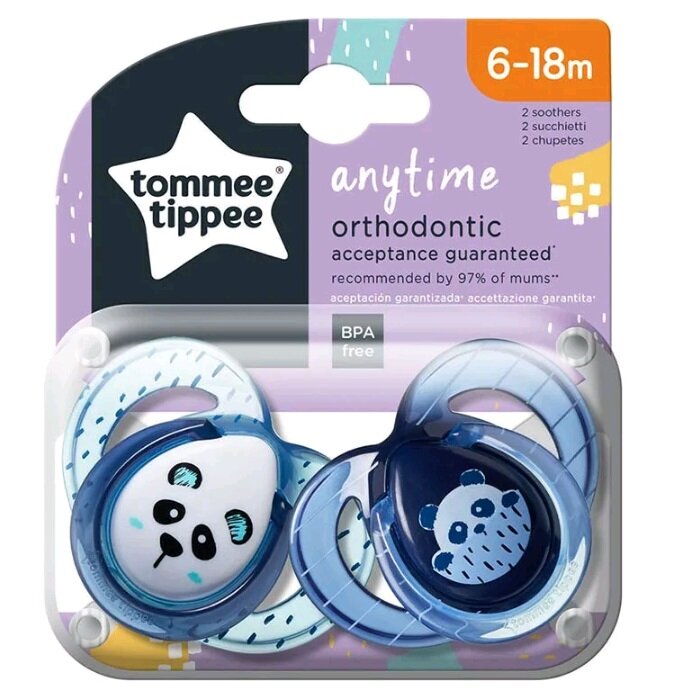 Купить Соска-пустышка Tommee Tippee силиконовая Anytime, 6-18 мес, 2 шт. синий/голубой