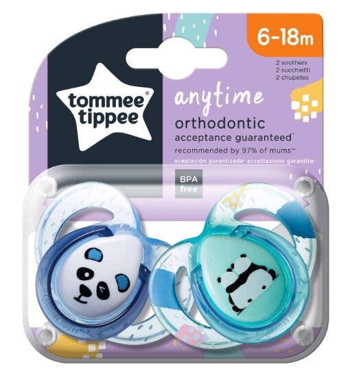 Купить Соска-пустышка Tommee Tippee силиконовая Anytime, 6-18 мес, 2 шт. голубой/белый