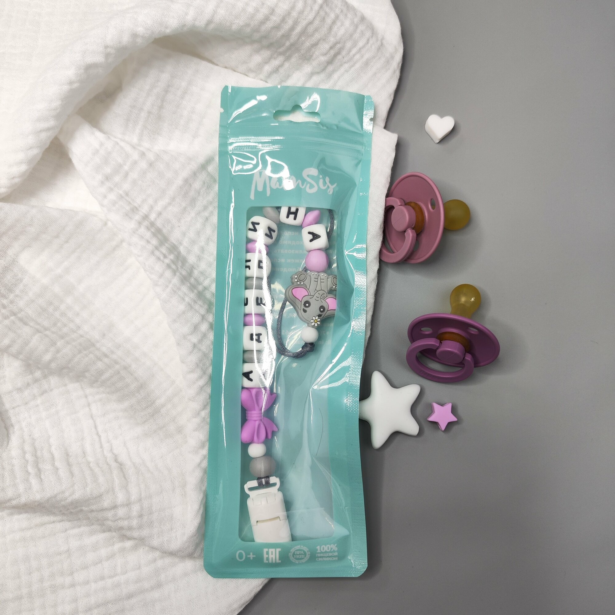 Именной силиконовый держатель для пустышки с грызунком - Адель, Аделина , для новорожденных