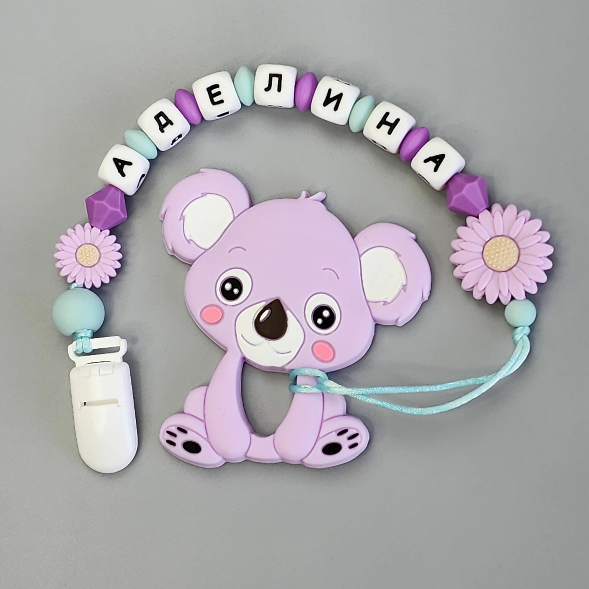 Именной силиконовый держатель для пустышки с грызунком - Аделина, Адель, для новорожденных, прорезыватель интересное:
