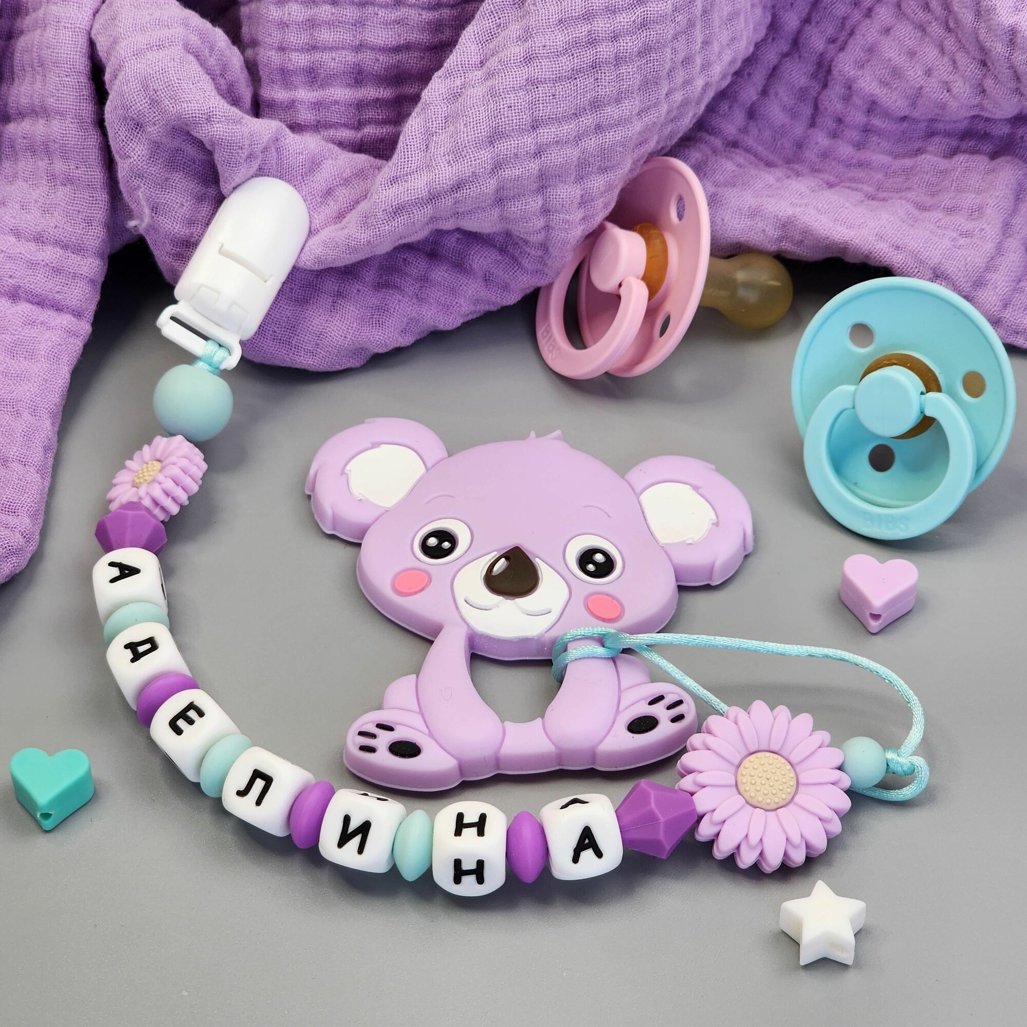 Купить Именной силиконовый держатель для пустышки с грызунком - Аделина, Адель, для новорожденных, прорезыватель