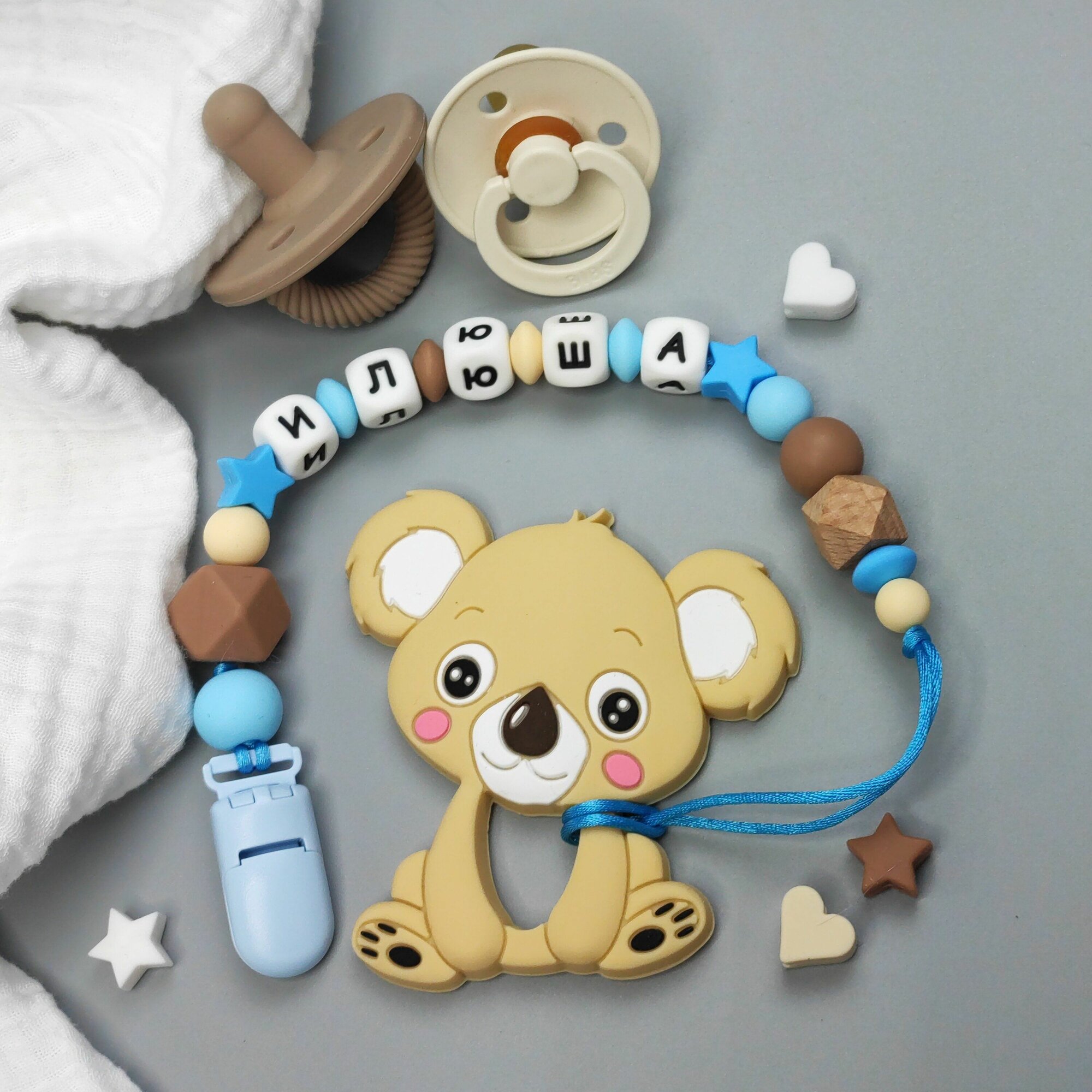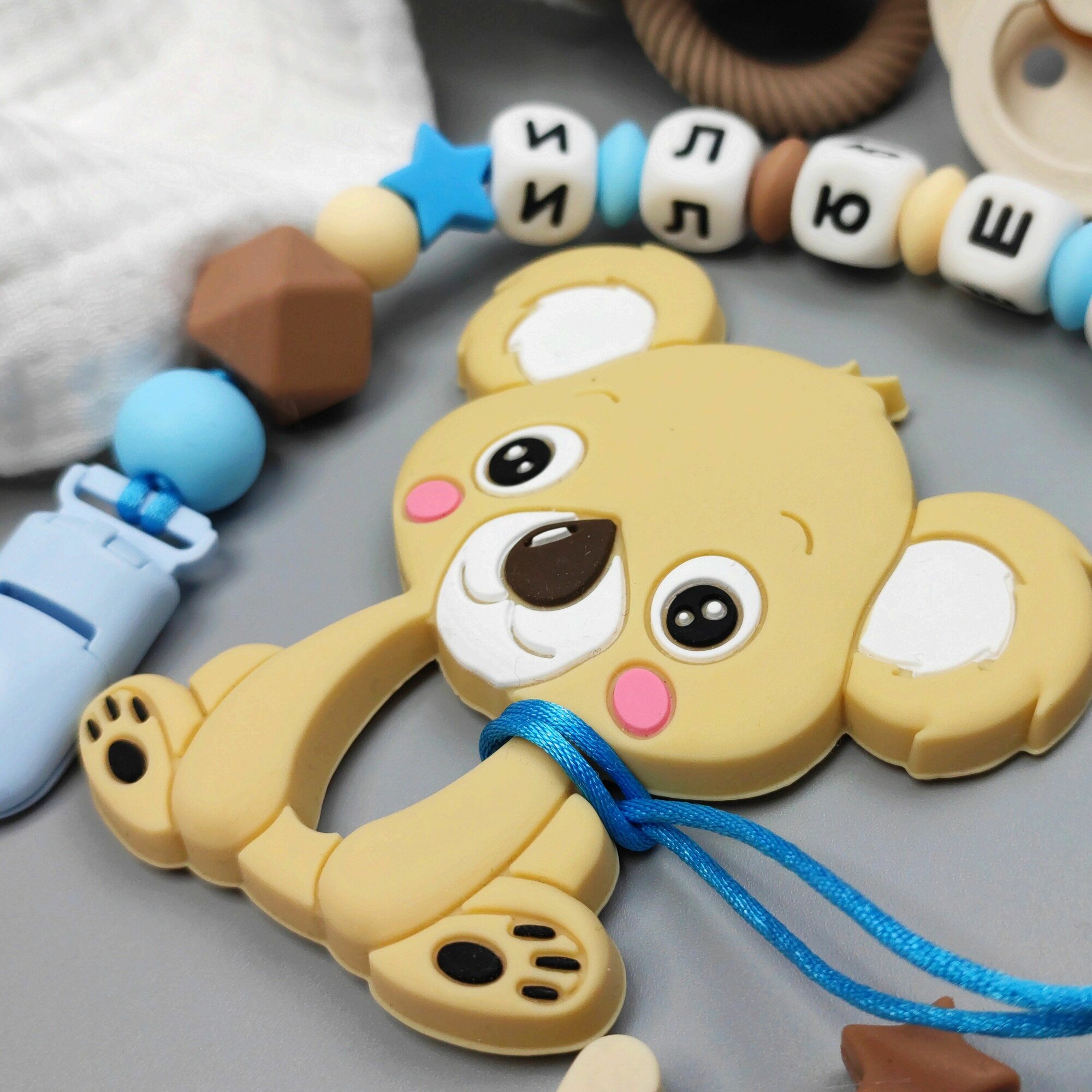 Купить Именной силиконовый держатель для пустышки с грызунком - Илья, Илюша