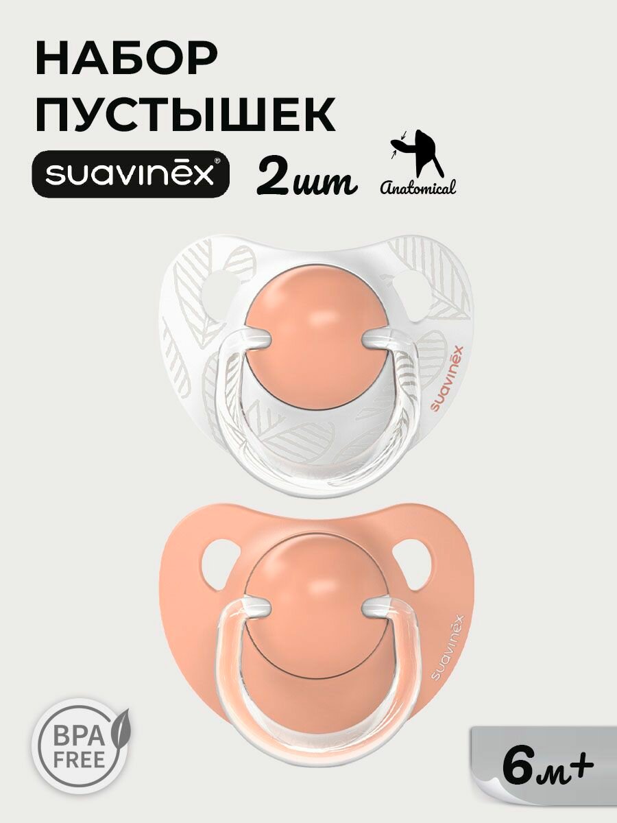 Набор (2 шт) детских силиконовых анатомических пустышек Suavinex от 6-18 месяцев, соски пустышки для ребенка 6+ интересное: