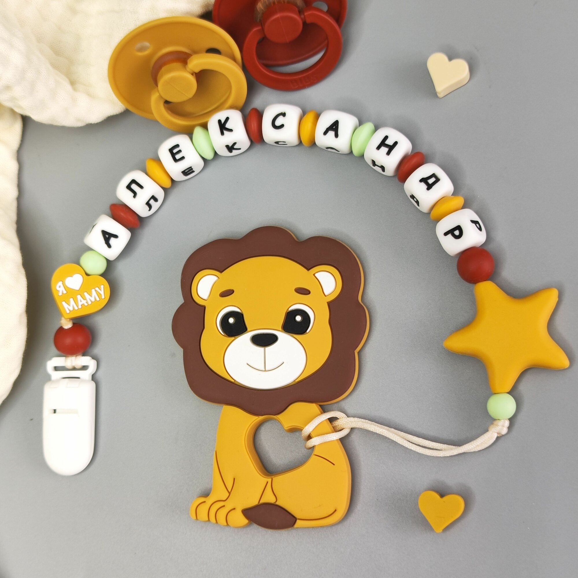 Именной силиконовый держатель для пустышки с грызунком - Саша, Александр, для новорожденных, прорезыватель интересное: