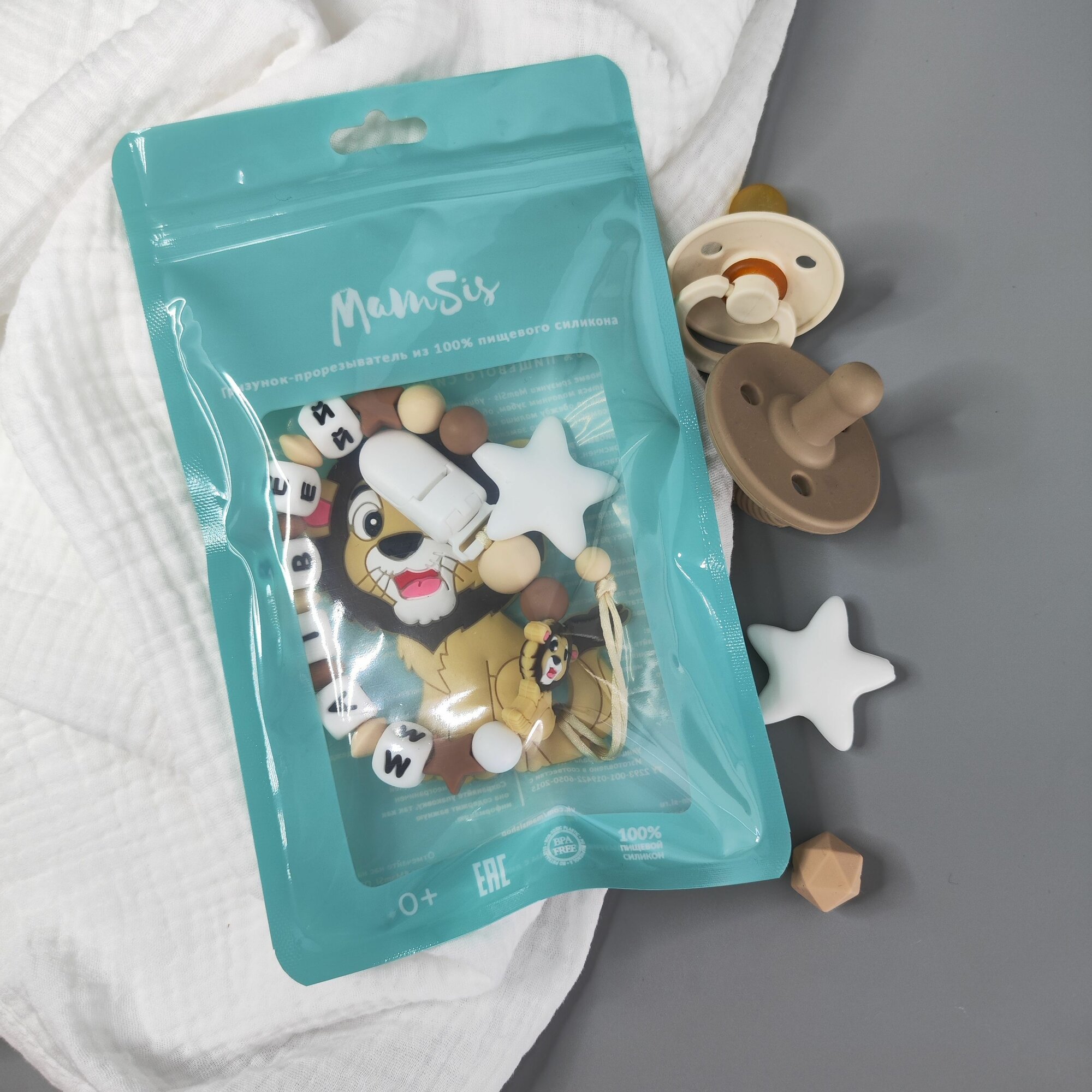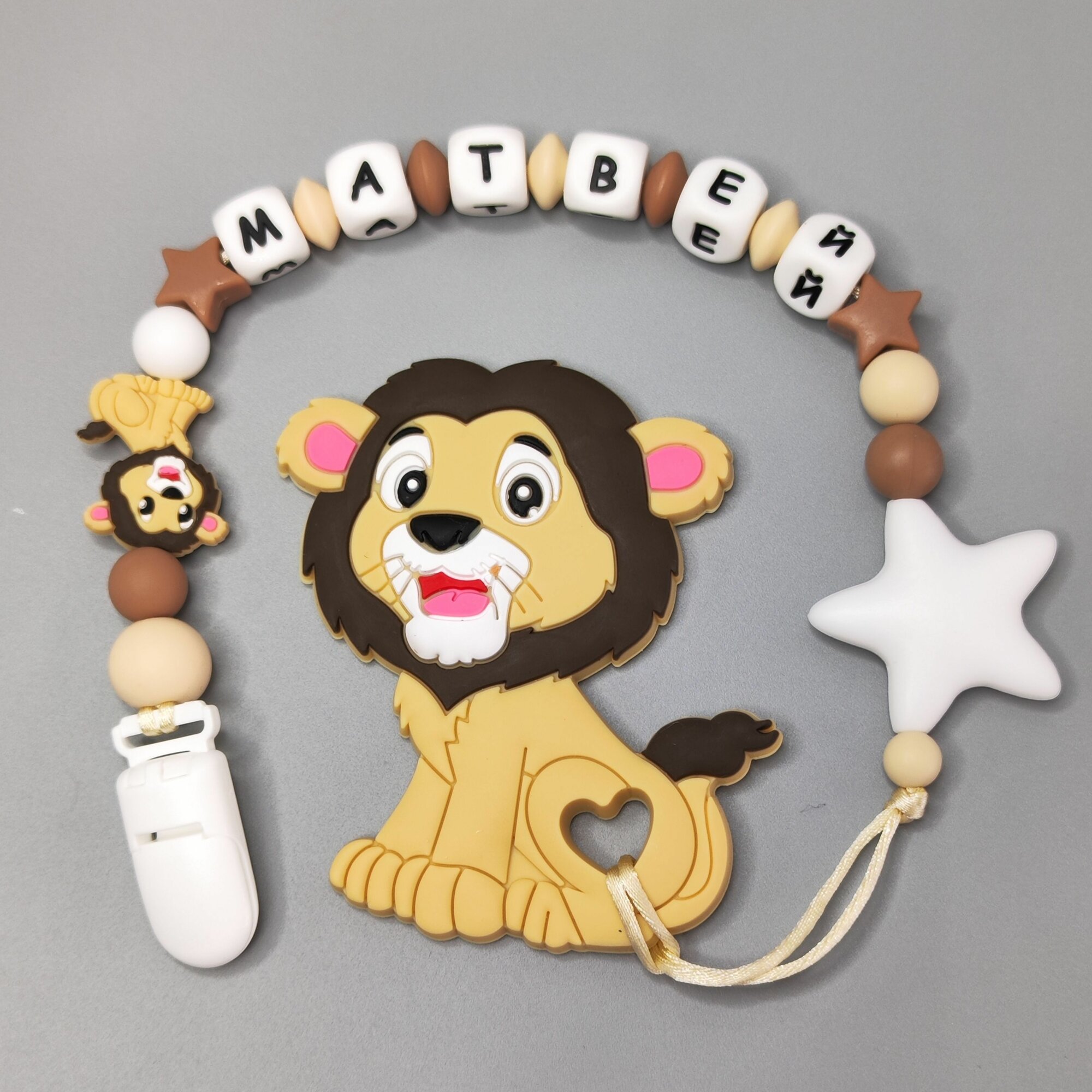 Именной силиконовый держатель для пустышки с грызунком - Матвей, для новорожденных, прорезыватель