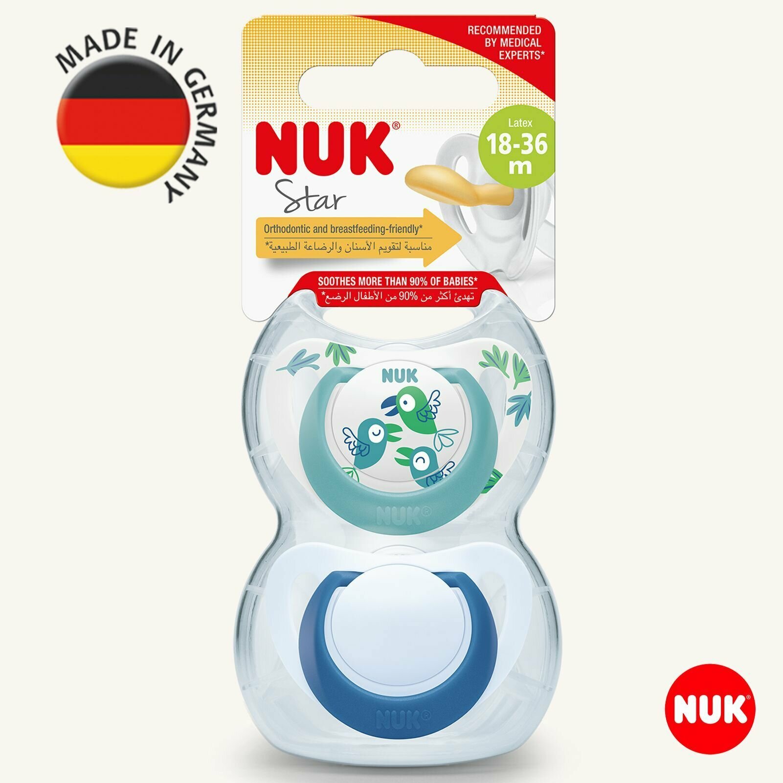 Купить NUK STAR Соска пустышка ортодонтическая латексная для детей 18-36 месяцев, 2 шт. Срок годности: 04.2025