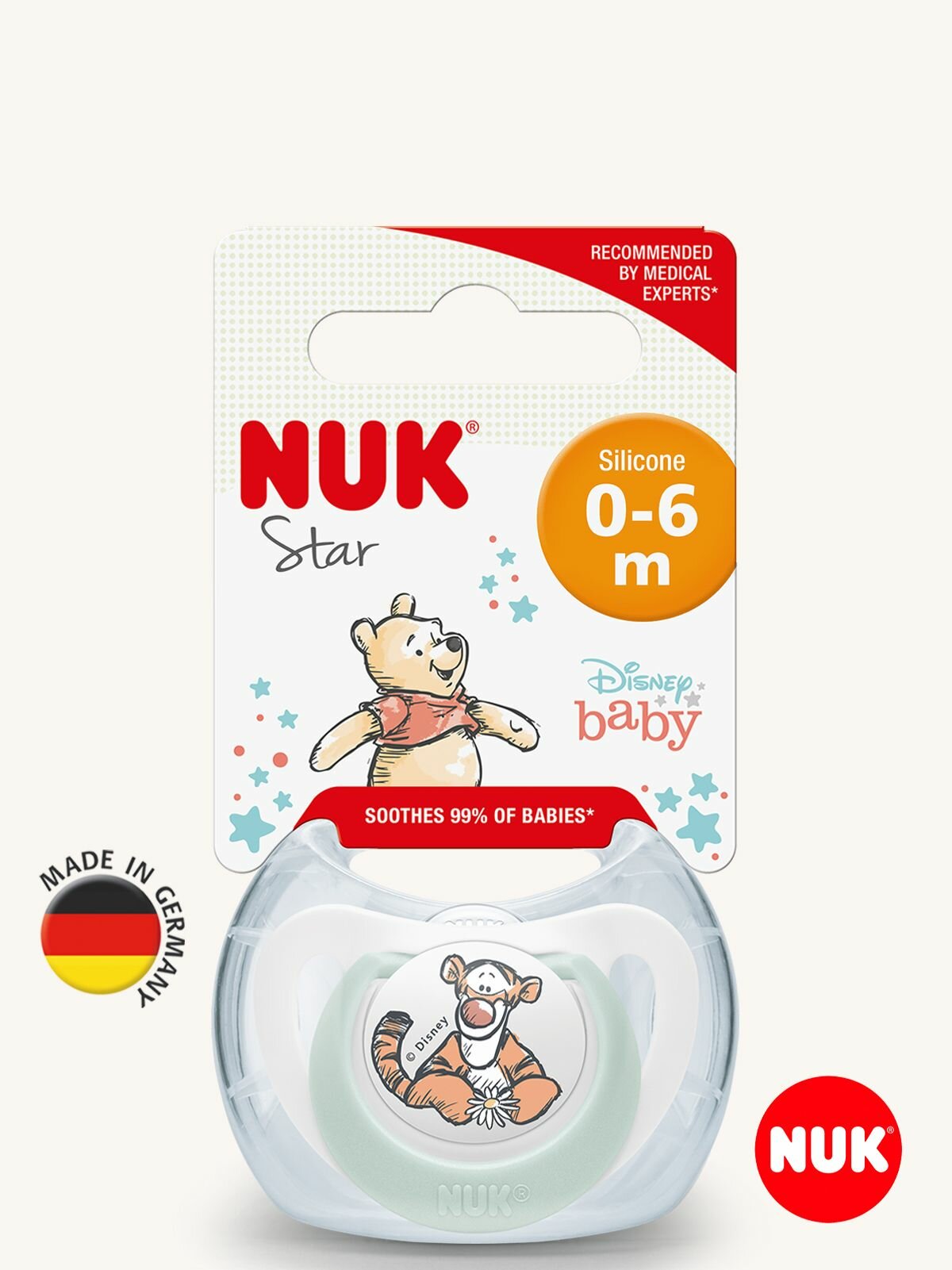 NUK STAR WINNIE Соска пустышка силиконовая 0-6 месяцев, 2 шт. в контейнере