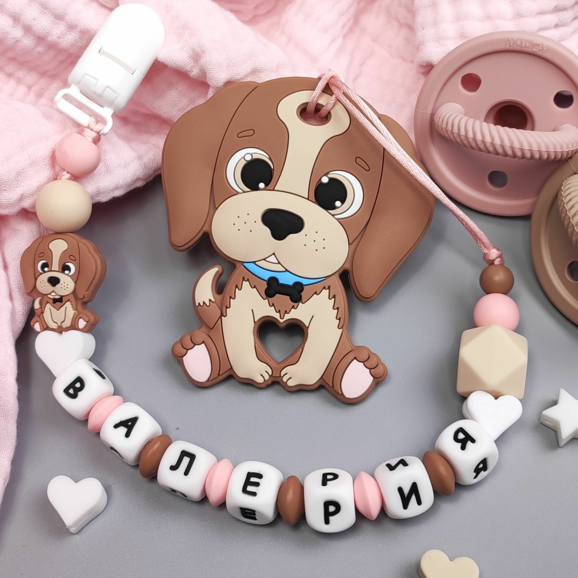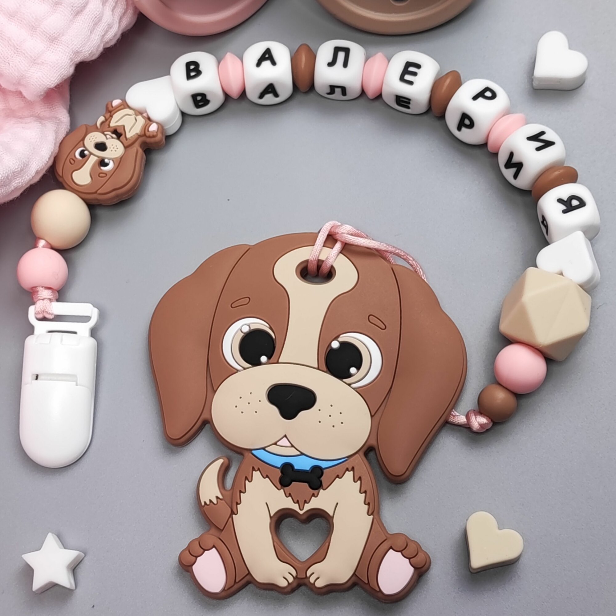 Купить Именной силиконовый держатель для пустышки с грызунком - Валерия, Лера, Лерочка, для новорожденных