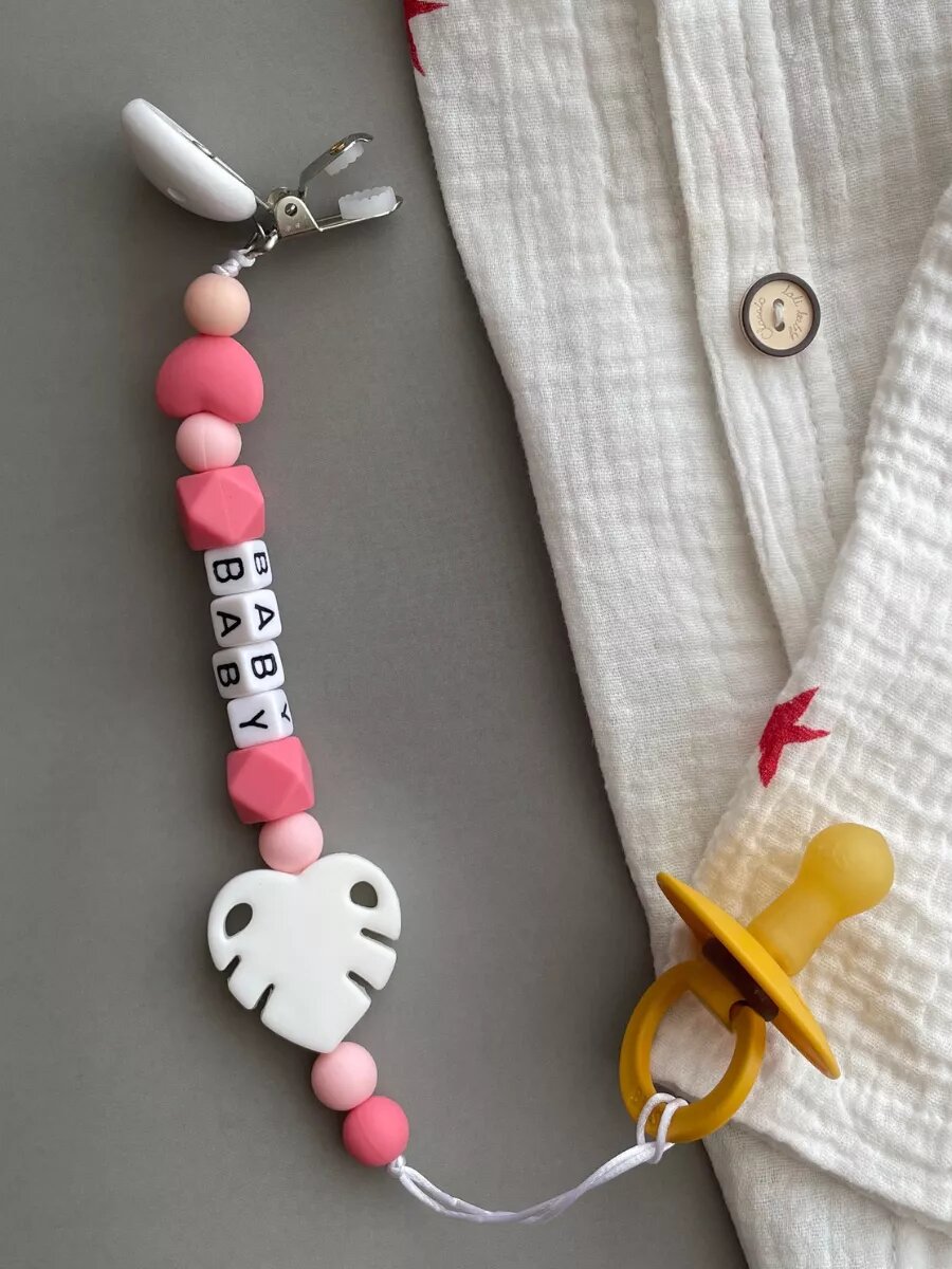 Держатель Garry Land, для соски, пустышки, грызунка, клипса из нержавеющей стали, розовый/белый