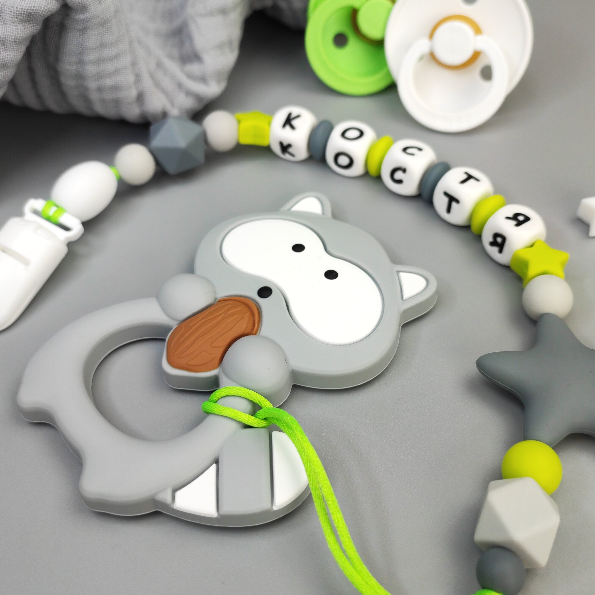 Купить Именной силиконовый держатель пустышки с грызунком, Костя, Константин, Костюша