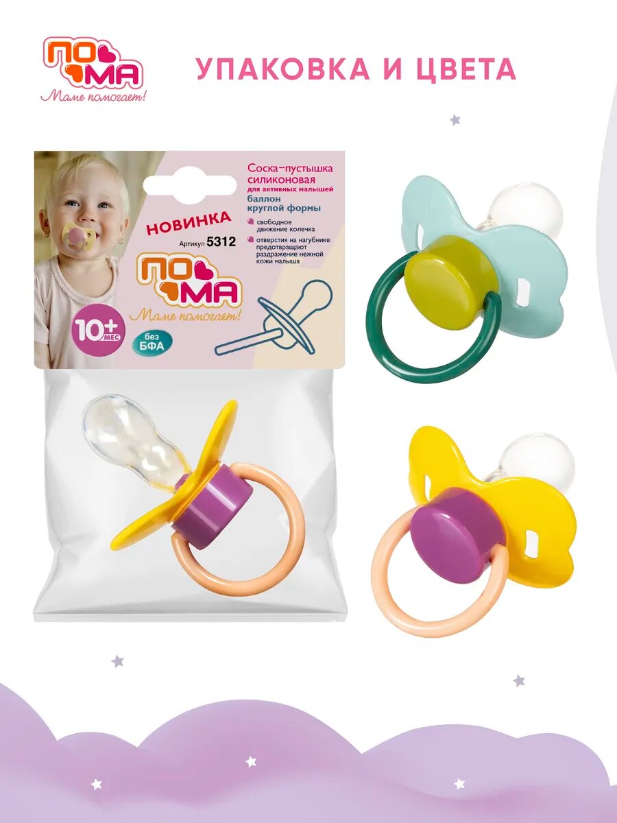 Соска-пустышка Пома "Вишня", силиконовая, круглая, от 10 мес, цвет жёлтый/фиолетовый интересное: