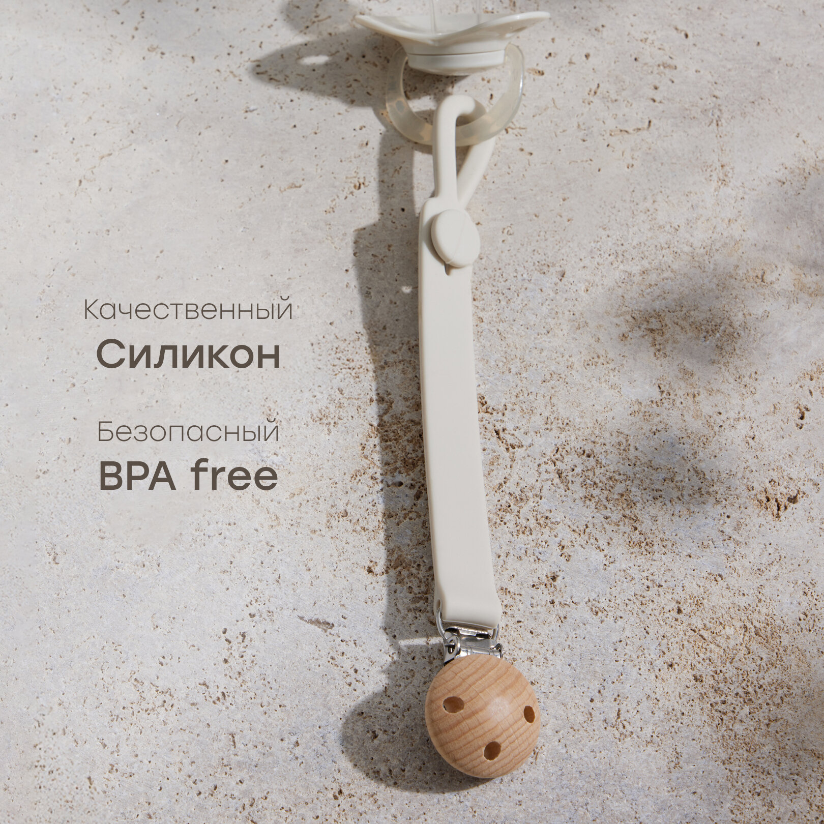 11029, Держатель для пустышки Happy Baby, держатель для соски с металлической прищепкой, силиконовый, светло-серый интересное:
