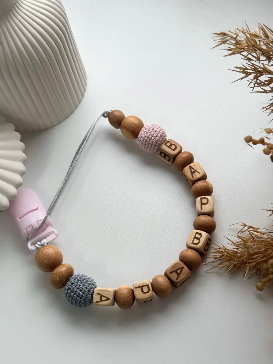 Именной держатель прорезыватель для соски из дерева можжевельник