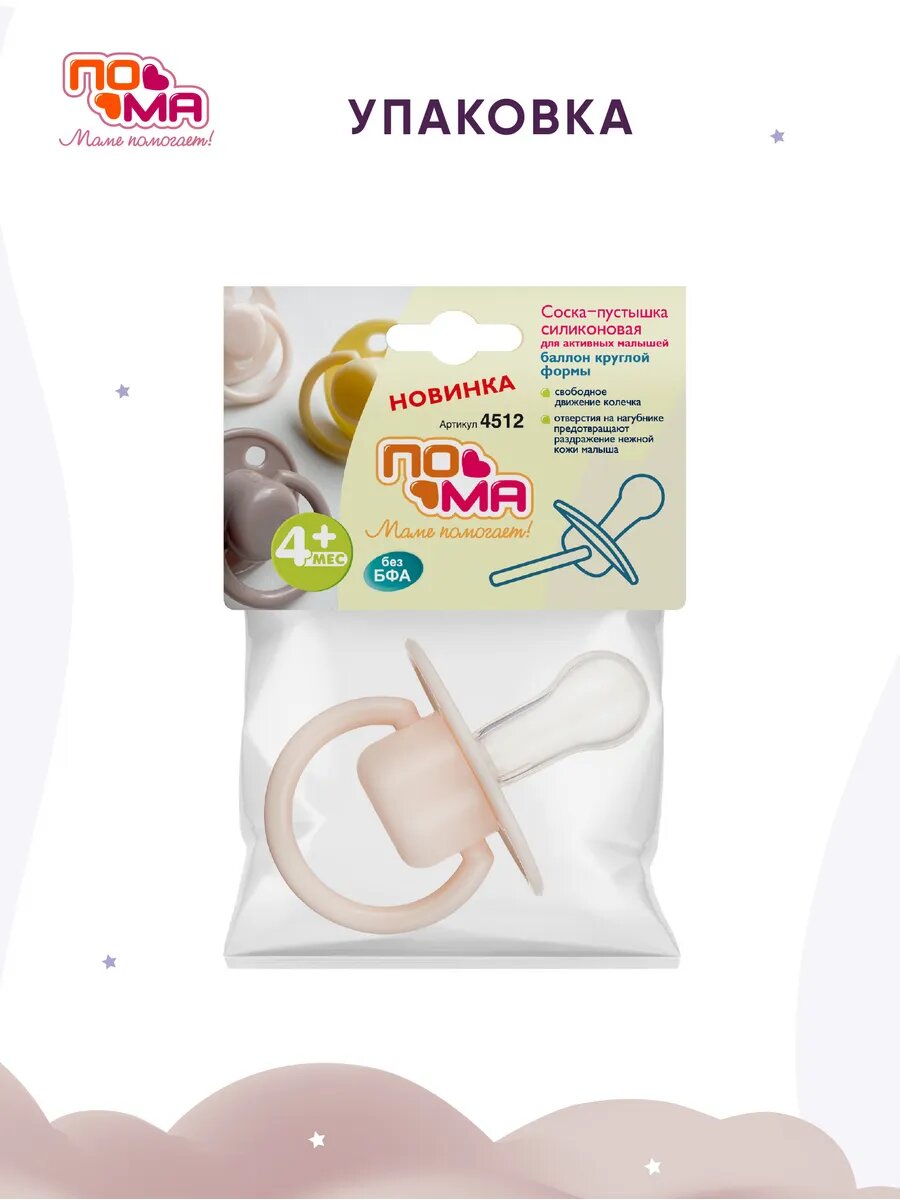 Соска-пустышка Пома, силиконовая, круглая, для детей от 4 мес, 1 шт, белая интересное: