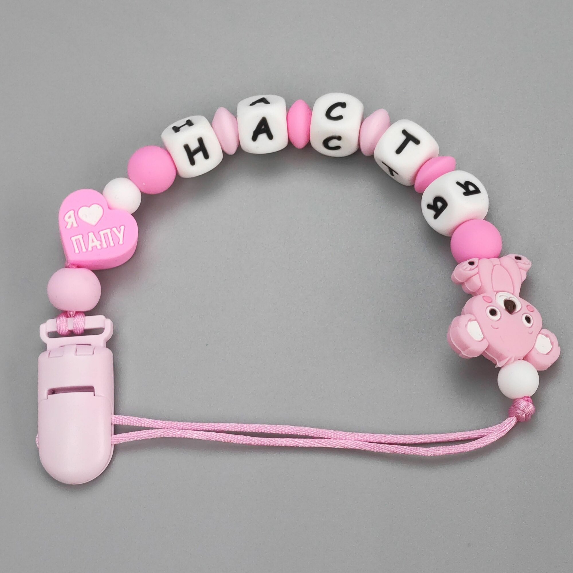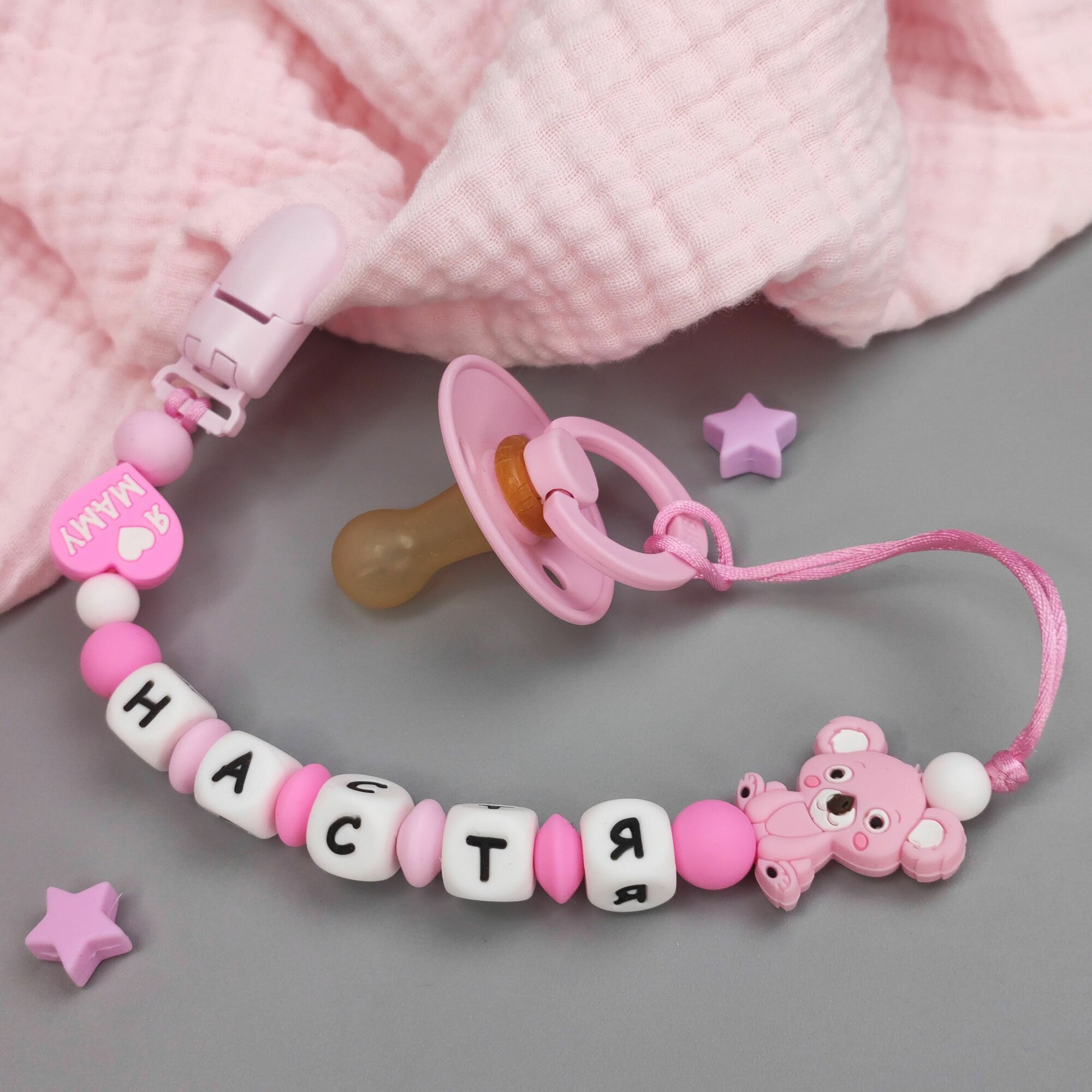 Купить Именной силиконовый держатель для пустышки - Анастасия, Настя, для новорожденных