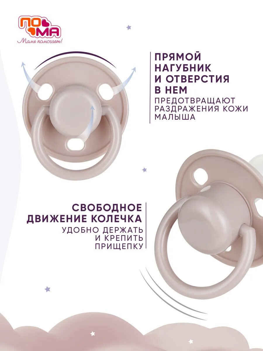 Пустышка Пома, силикон, круглая, бежевая лайт, с кольцом, с вентиляцией, 1 шт интересное: