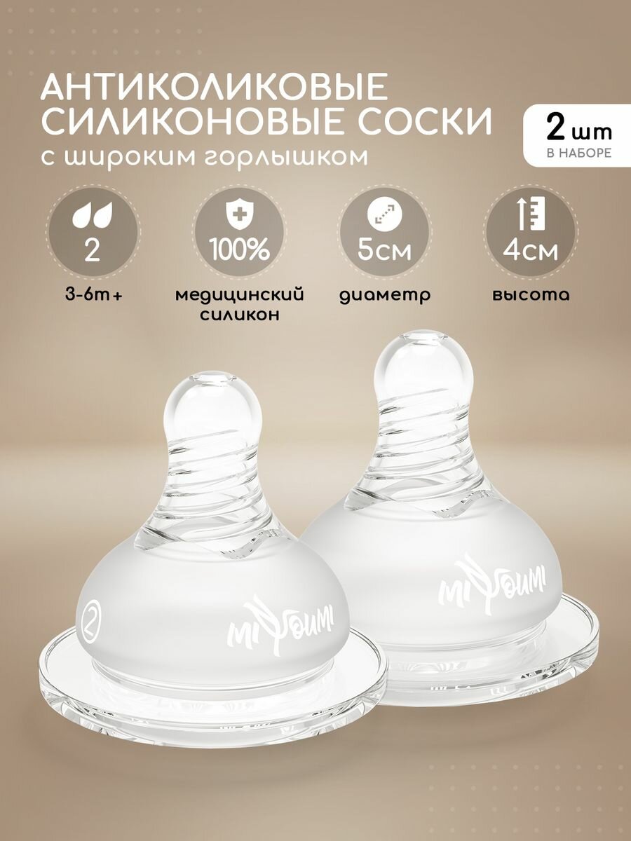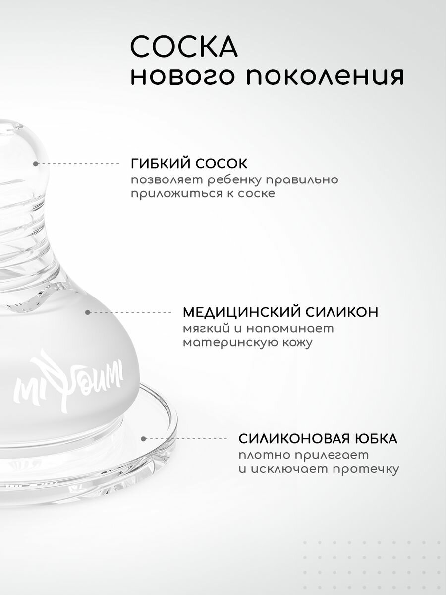 Соска для бутылочки Miyoumi, силикон, широкое горло, ортодонтическая