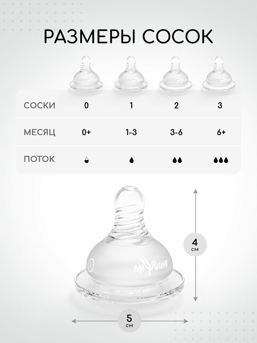 Антиколиковая соска силиконовая МирДетства для бутылочки с широким горлом, точечное отверстие и быстрый поток 6+, 1 шт.