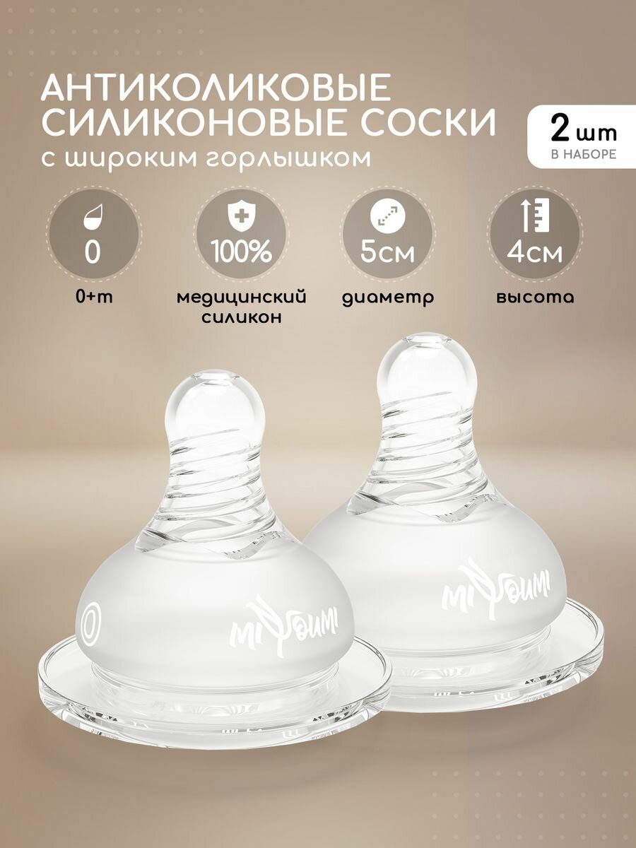 Соска для бутылочки Miyoumi, силикон, широкое горло, ортодонтическая интересное: