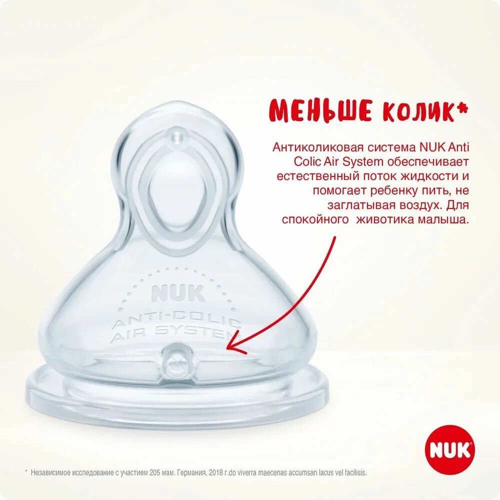 NUK FC+ Соска для бутылочки силиконовая с отверстием Flow Control, 6-18 месяцев, 2 шт интересное: