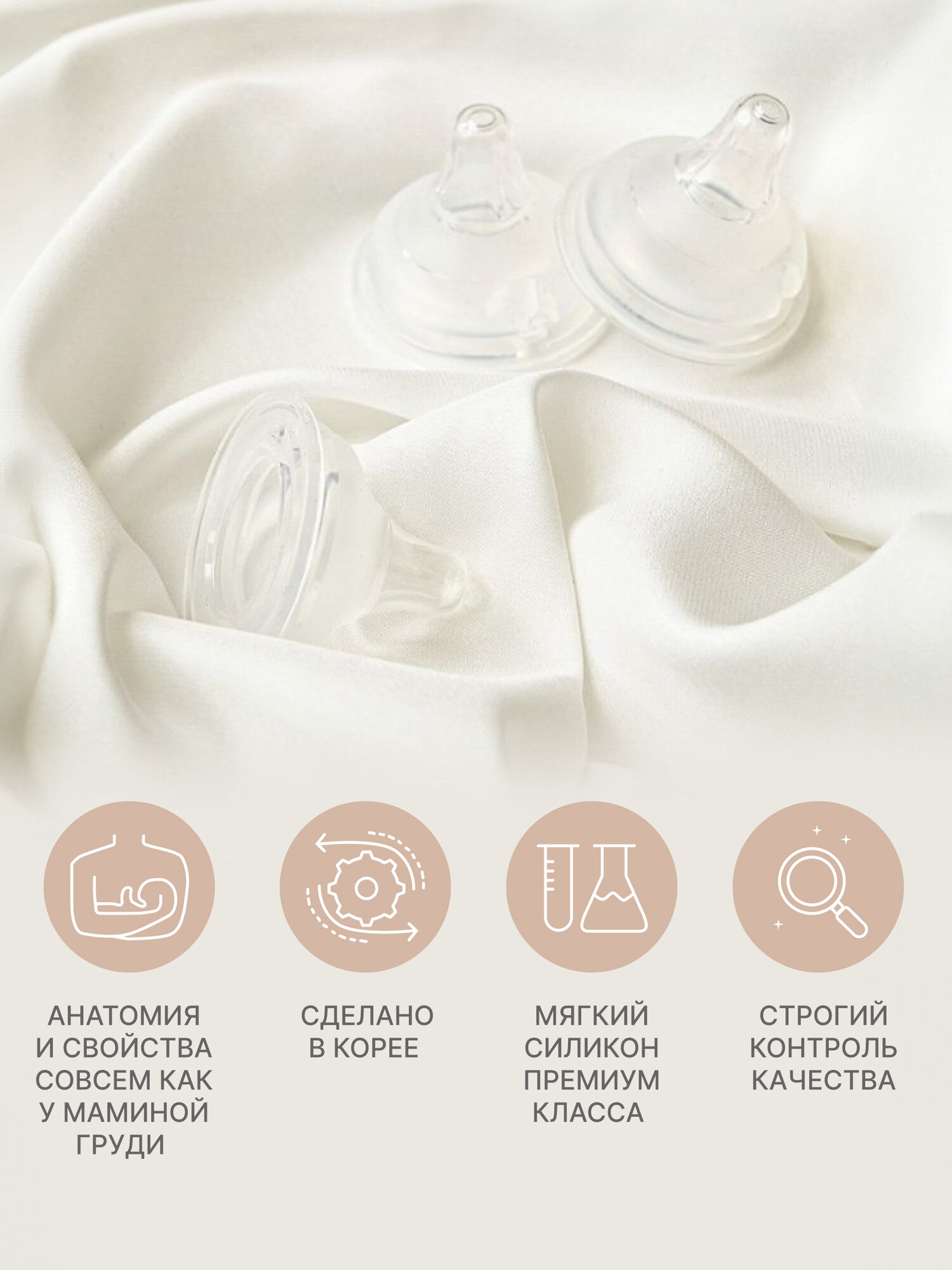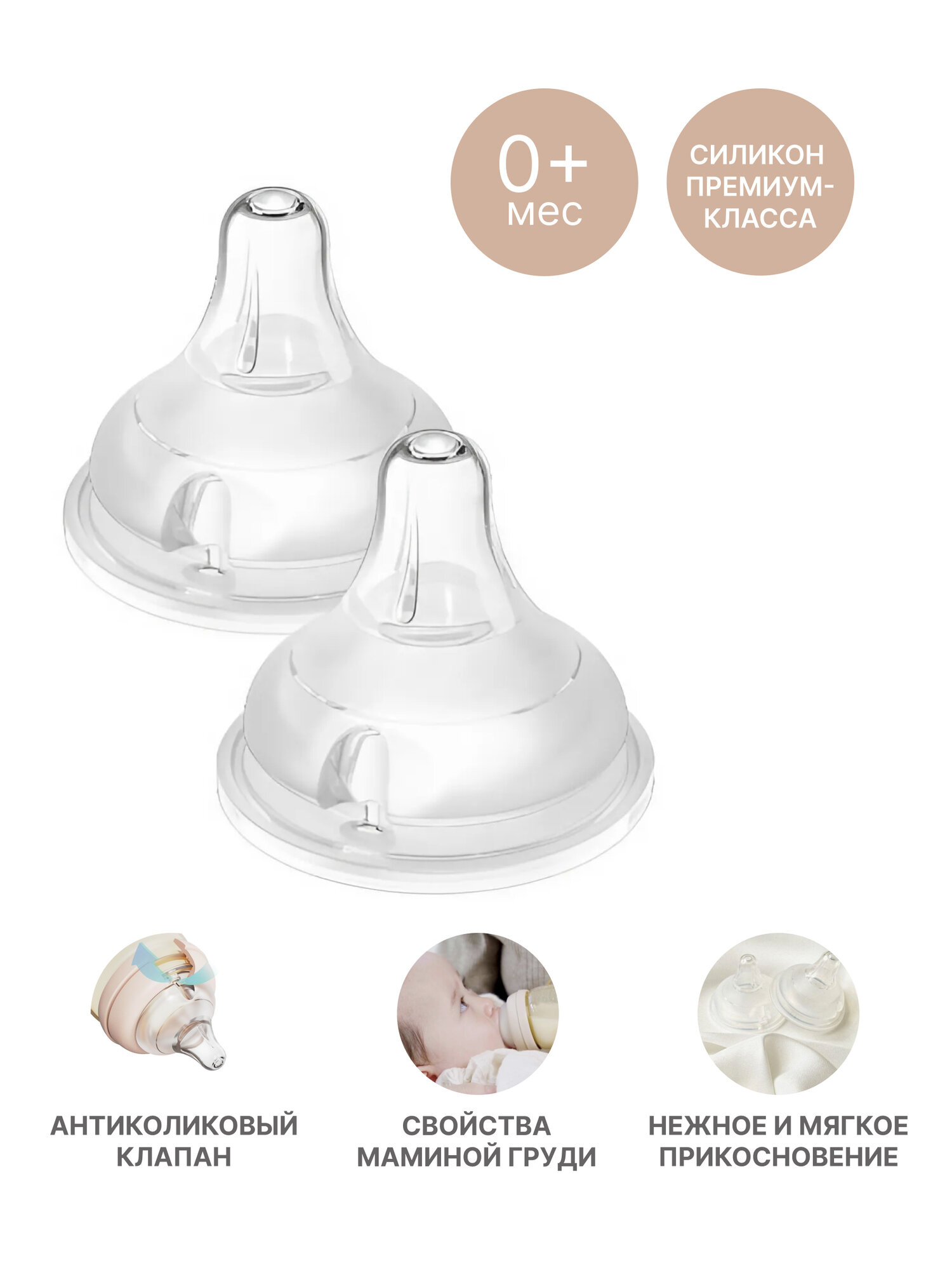 Соски антиколиковые для бутылочек Moyuum 0+ мес. для новорожденных, силиконовые анатомические, 2 шт. интересное: