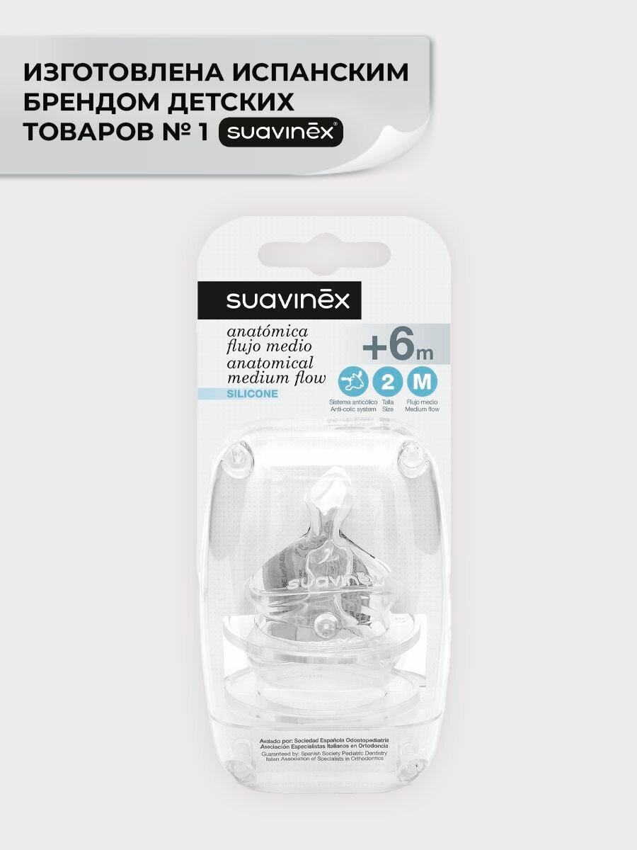 Набор (2 шт) силиконовых анатомических сосок для бутылочки Suavinex, от 6 мес+ размер М интересное: