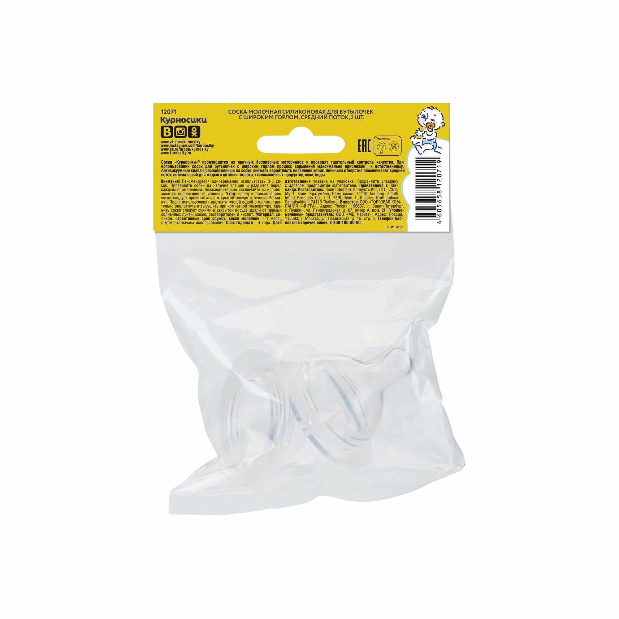 Курносики Соска силиконовая для бутылочки с широким горлом средний поток 2шт 3+ интересное: