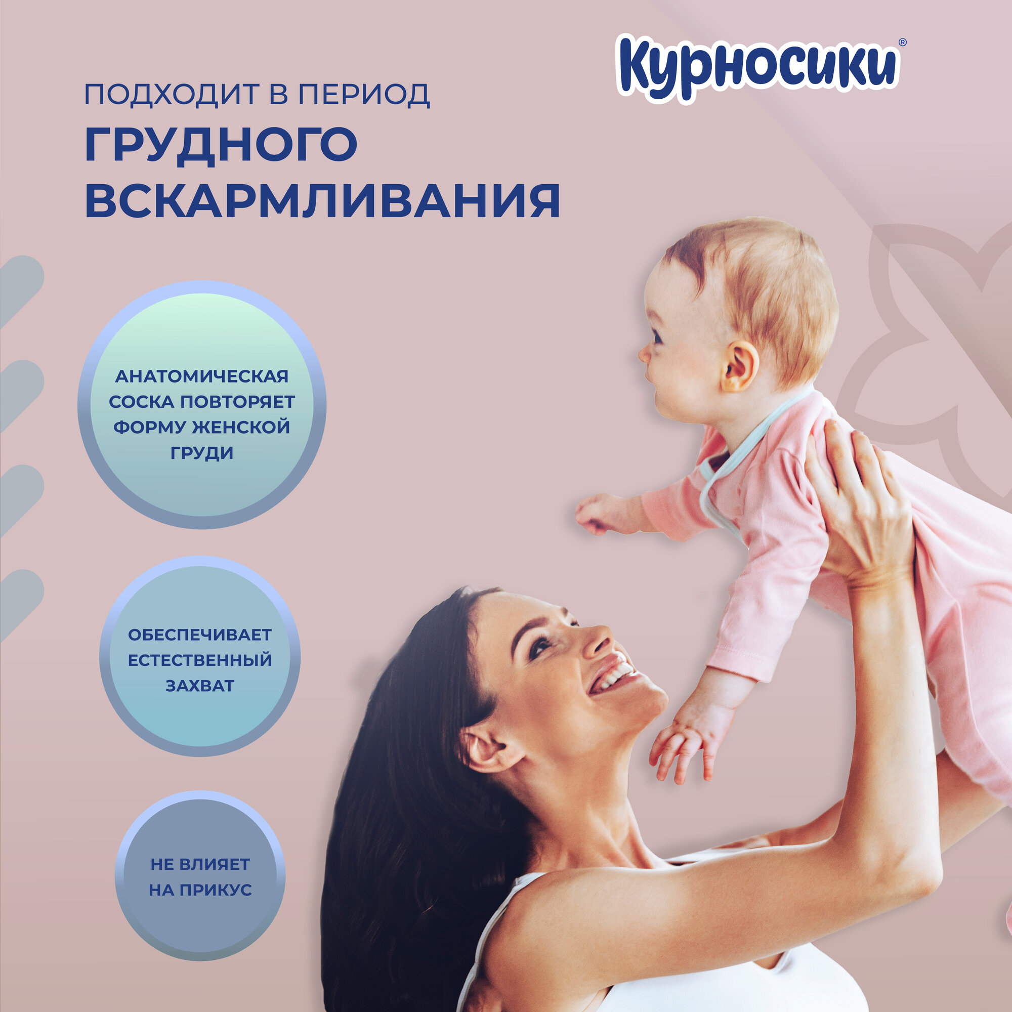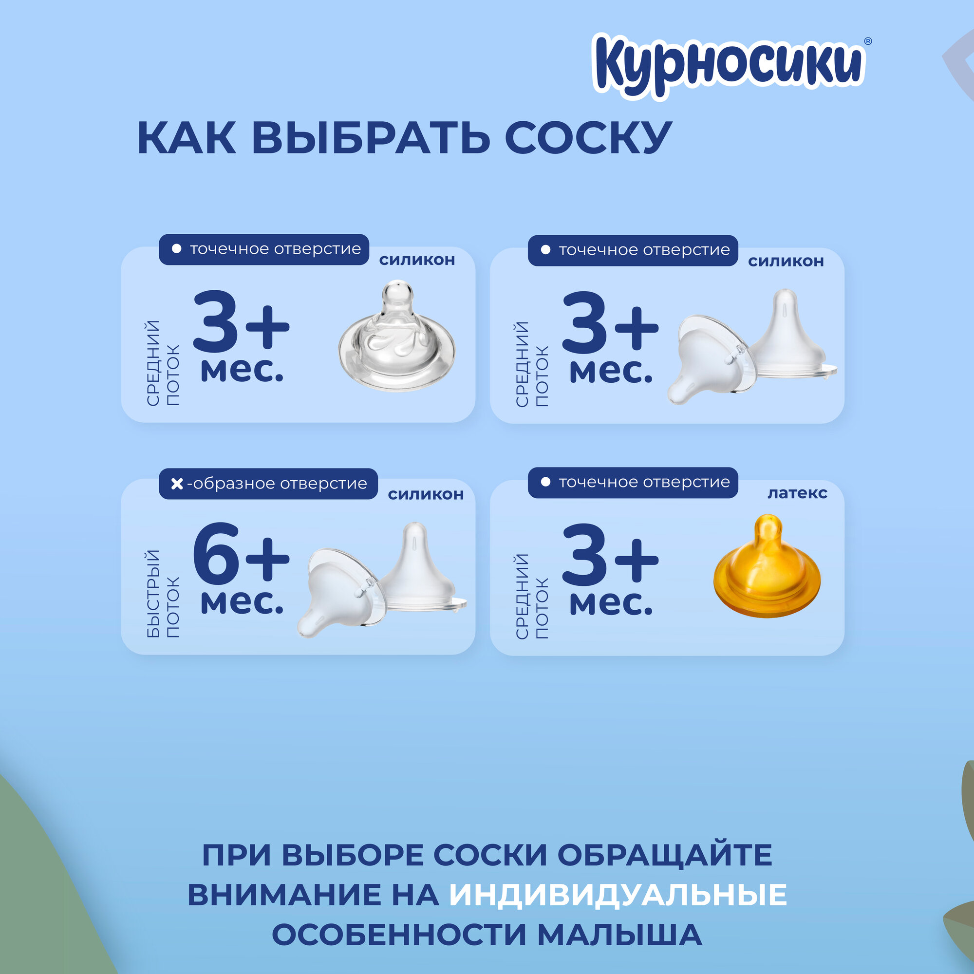Антиколиковая силиконовая соска Курносики для бутылочки с широким горлом, точечное отверстие и средний поток 3+, 1 шт. интересное: