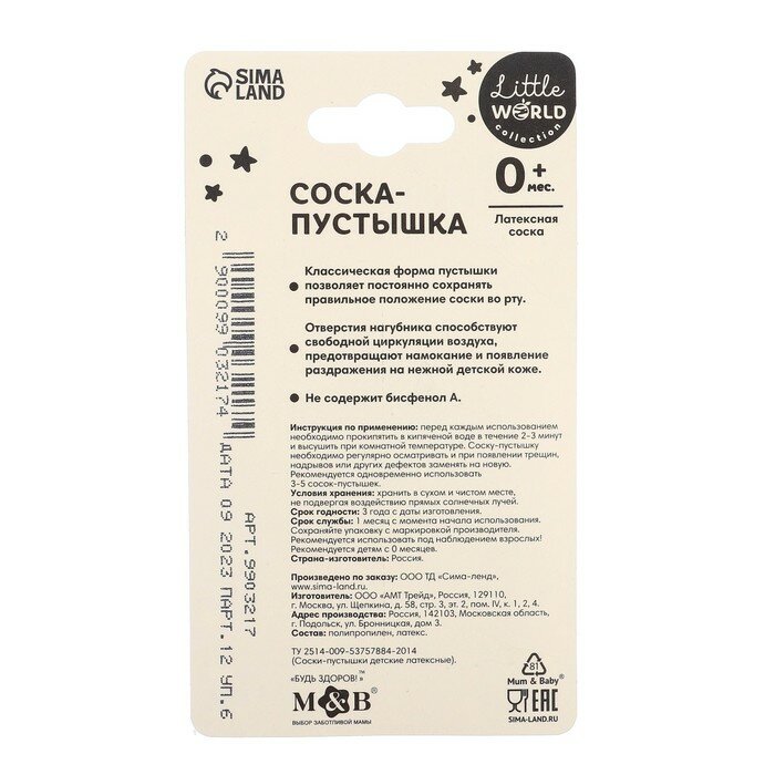 "Mum&Baby" - классическая соска-пустышка латекс для девочек+0 мес интересное: