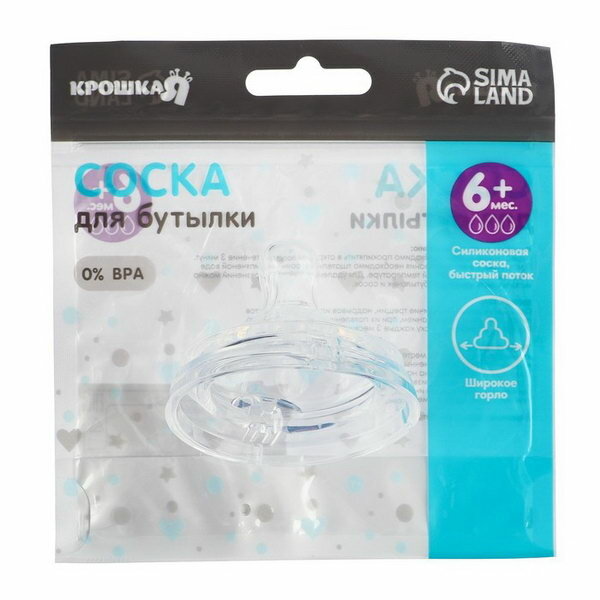 Антиколиковая соска силиконовая МирДетства для бутылочки с широким горлом, точечное отверстие и быстрый поток 6+, 1 шт.