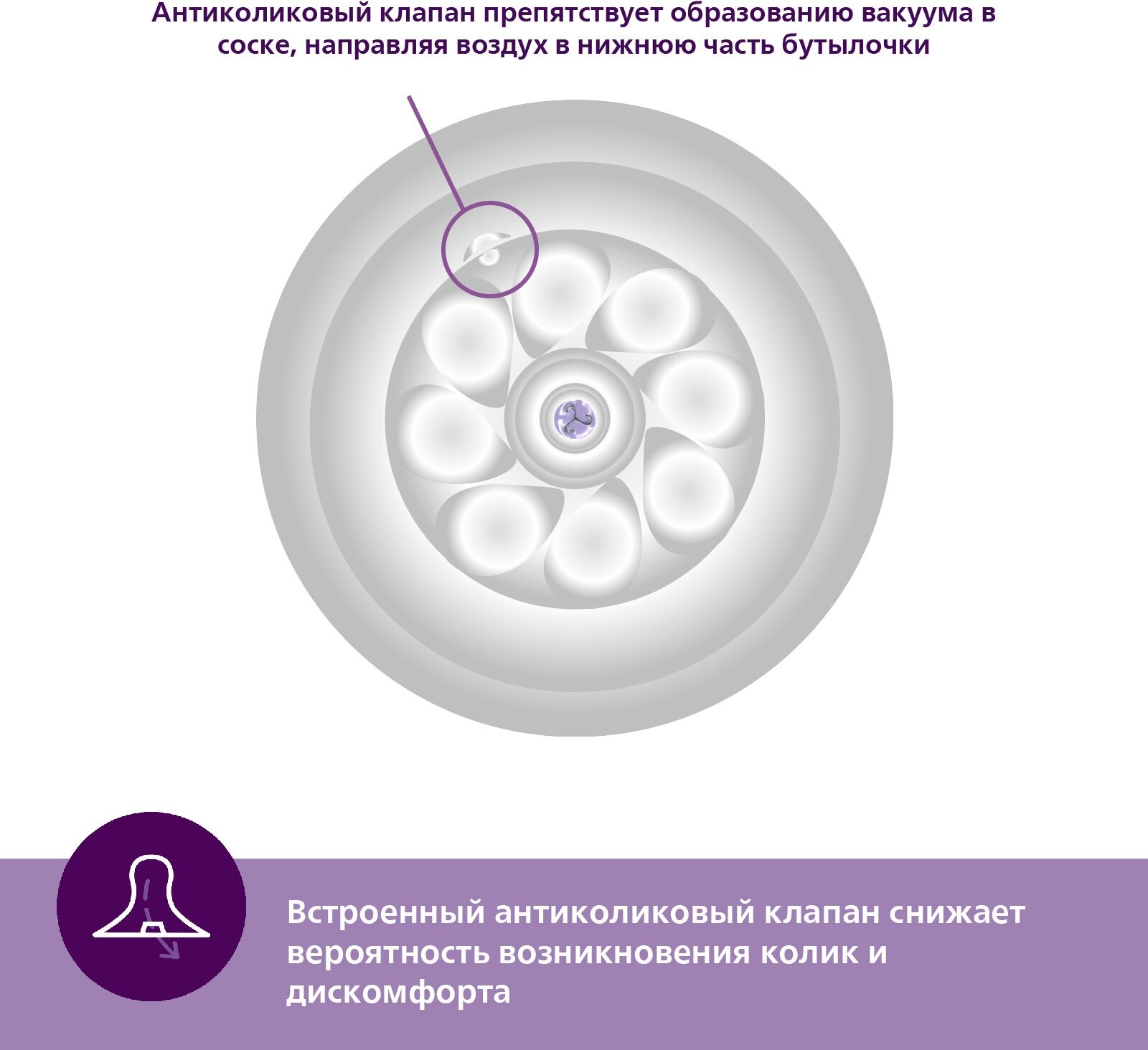 Антиколиковая соска для бутылочки, широкое горло O50 мм.