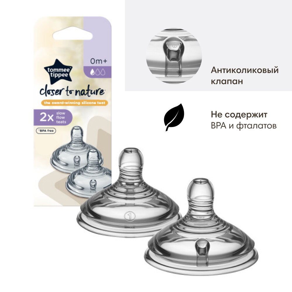 Соска силиконовая медленный поток для бутылочки Tommee Tippee, Closer to nature 2шт 0+ интересное: