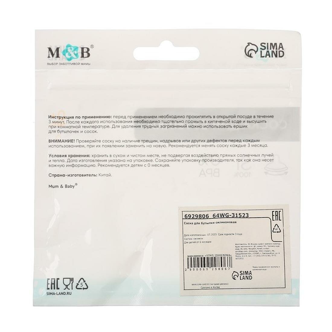 Купить Соска силиконовая, широкое горло, от 0 мес, медленный поток