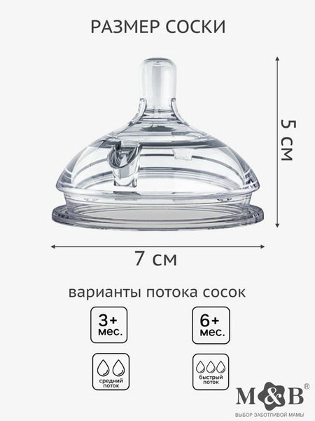 Соска для бутылочки силиконовой M&B, антиколиковая, +3мес, ШГ ?70мм. интересное: