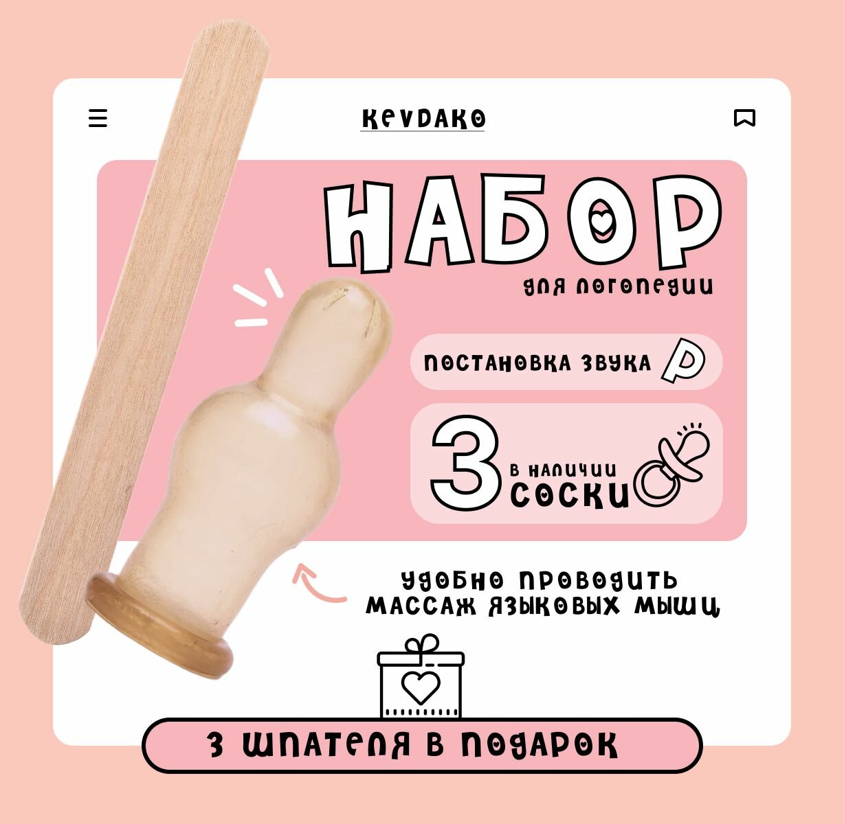 Соска классическая для занятий с логопедом и постановки звуков 3 штуки + 3 шпателя интересное:
