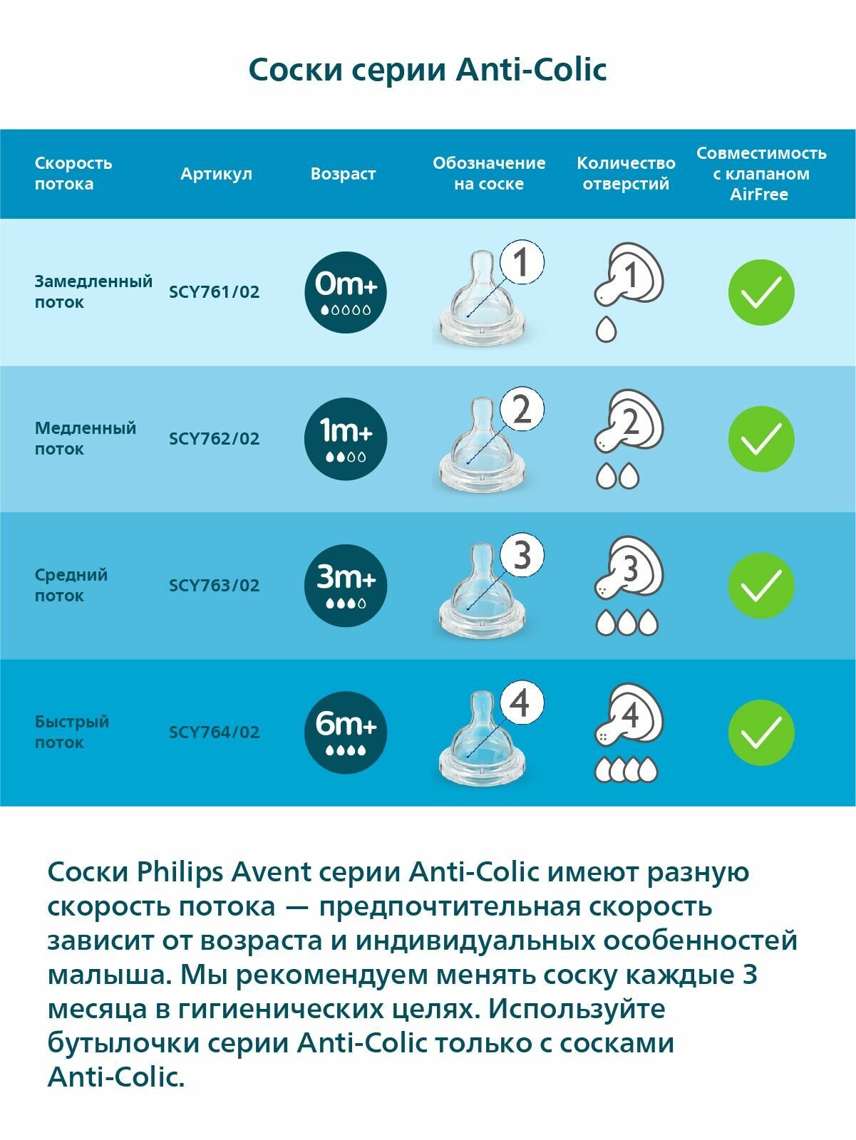 Антиколиковая соска силиконовая МирДетства для бутылочки с широким горлом, точечное отверстие и быстрый поток 6+, 1 шт.