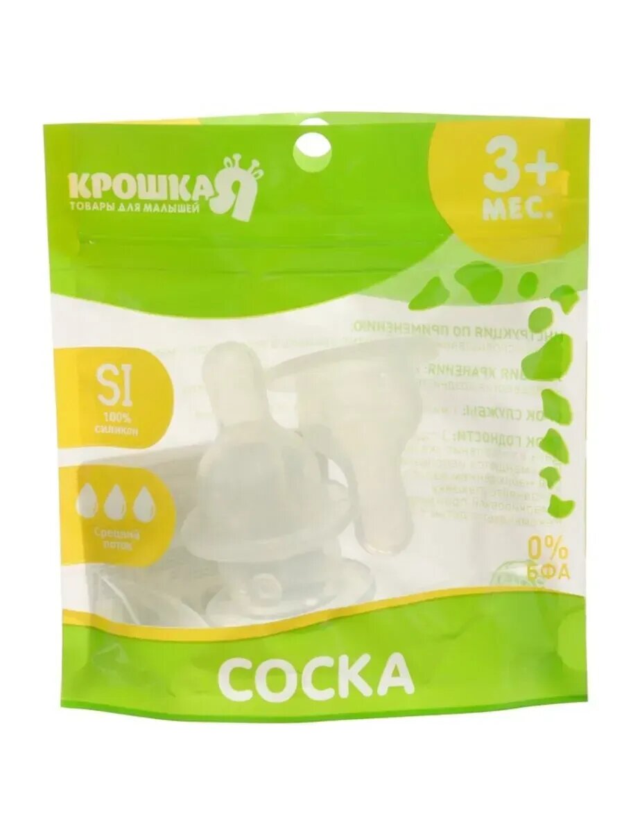 Антиколиковая соска силиконовая МирДетства для бутылочки с широким горлом, точечное отверстие и быстрый поток 6+, 1 шт.