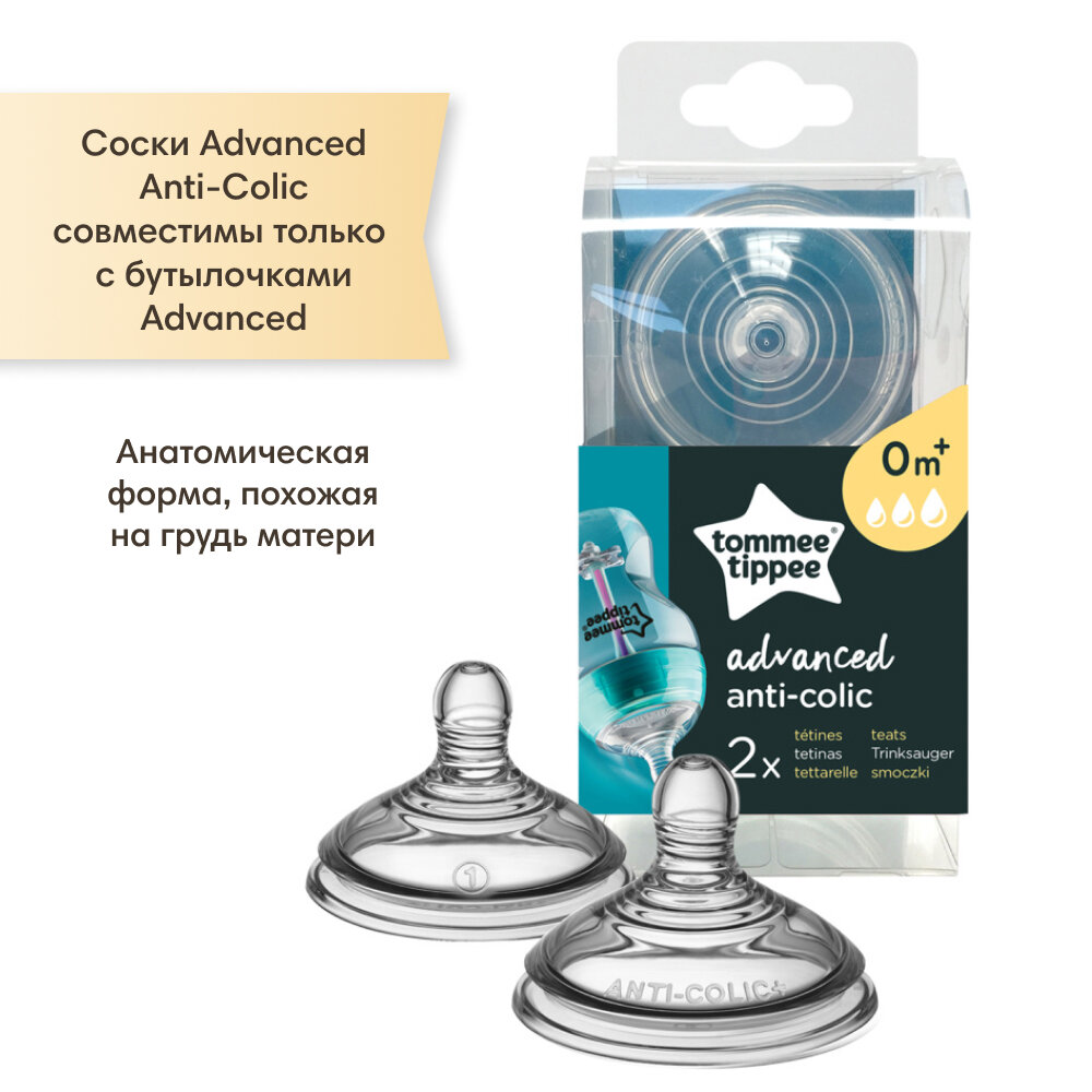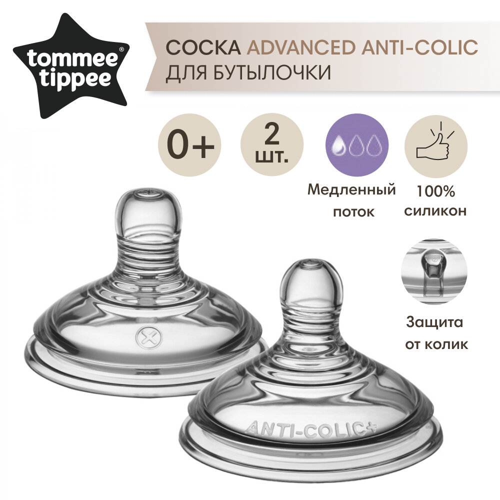Соска силиконовая для бутылочки Tommee Tippee Advanced Anti-Colic, переменный поток, 2шт. интересное: