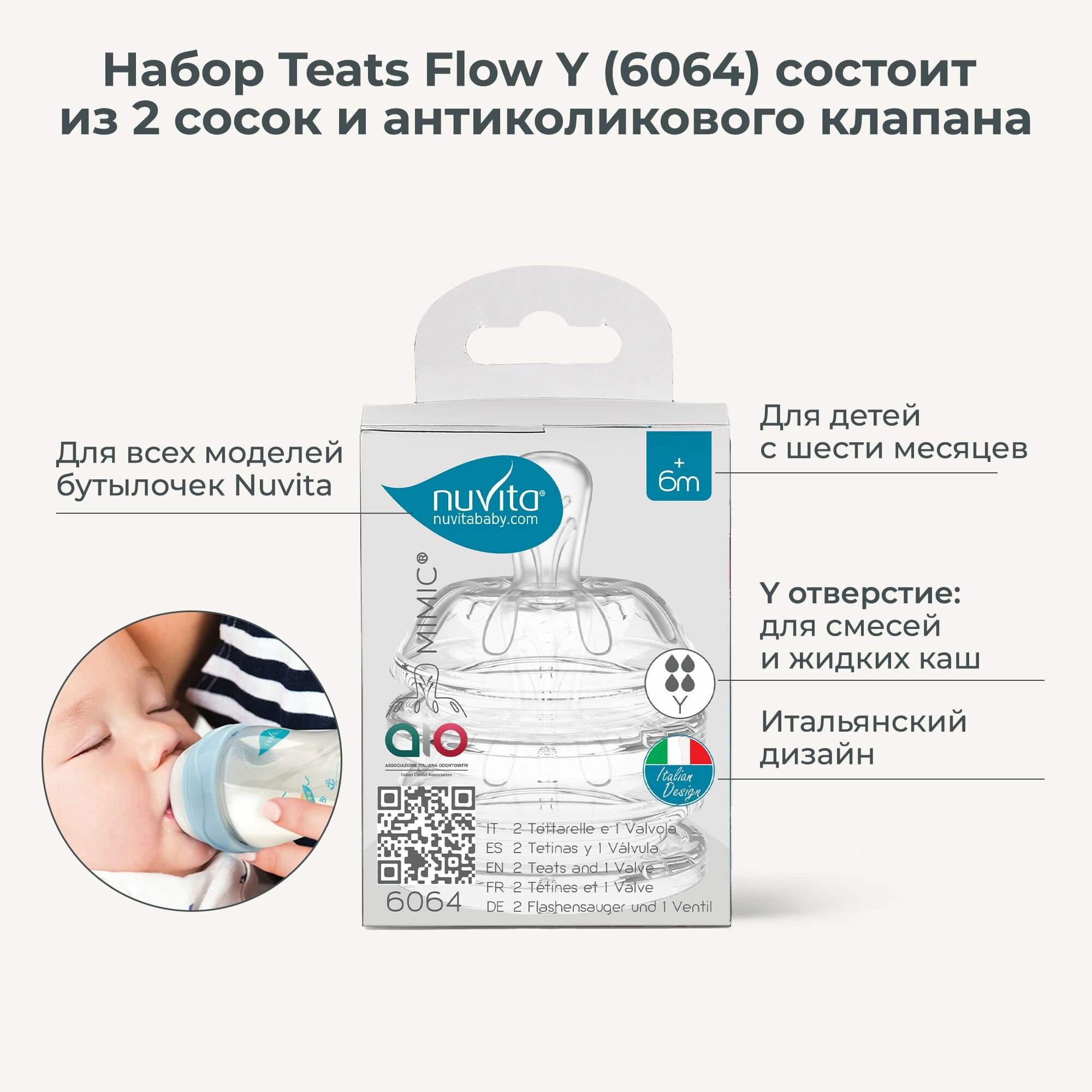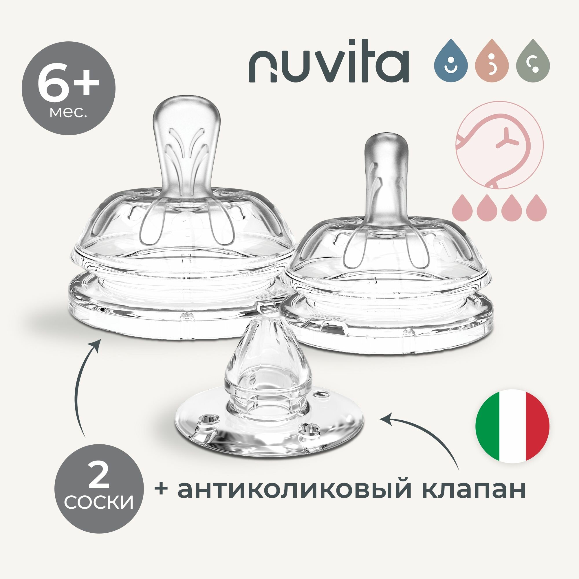 Купить Набор Nuvita Teats Flow Y: силиконовая соска для бутылочек, для смесей и жидких каш (2 шт.) и антиколиковый клапан