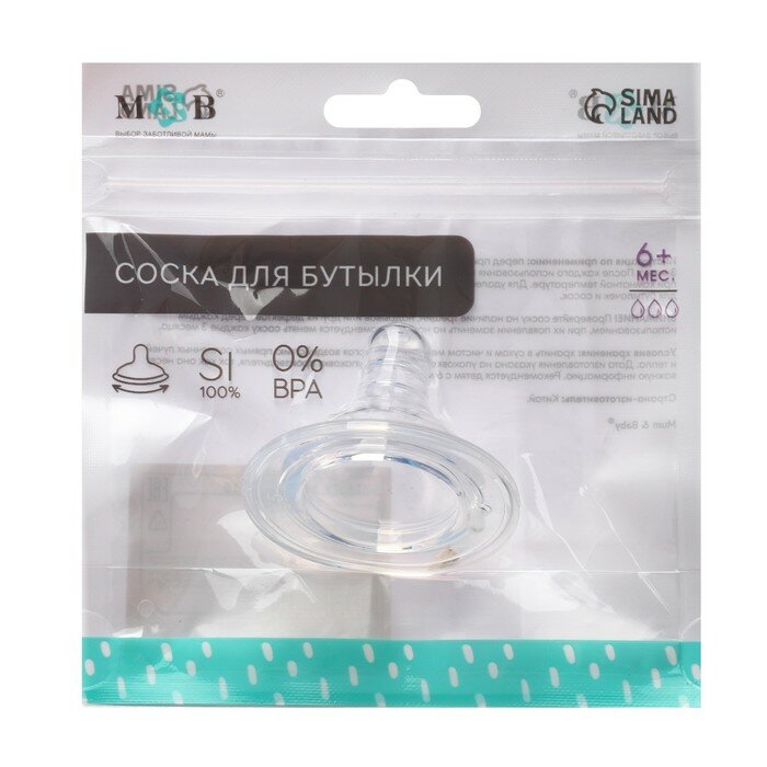 Антиколиковая соска силиконовая МирДетства для бутылочки с широким горлом, точечное отверстие и быстрый поток 6+, 1 шт.